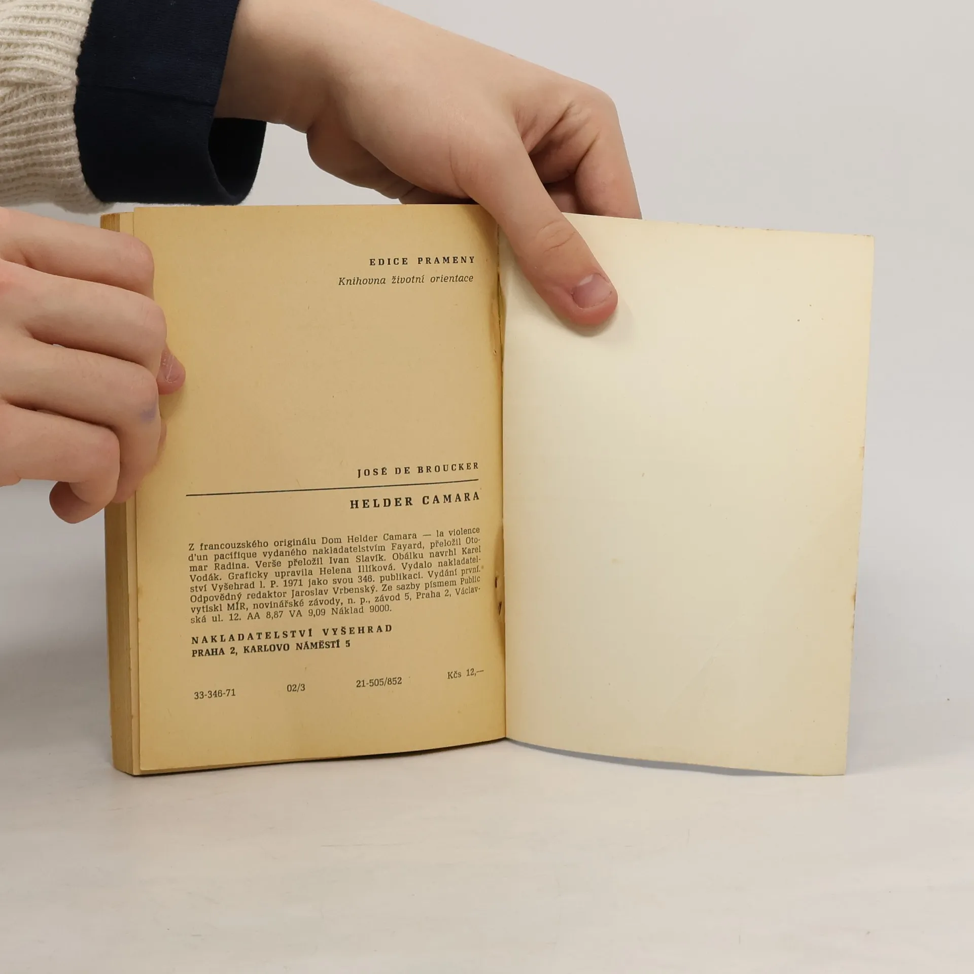 Kniha o Helderu Camarovi, jedné z nejvýznamnějších osobností dnešního křesťanského světa. José de Broucker, Camarův přítel, zachycuje jeho dramatický život, který dal všechno do boje proti vzrůstající míře sociálních nespravedlností. Reportážně stylizované svědectví o recifském arcibiskupovi, který zasvětil život neúnavné práci pro zajištění sociální spravedlnosti zejména v rozvojových zemích, často využívá přímých rozhovorů, jež s Domem Helderem vedl jeho přítel, autor knížky. Čtenář pozná tíživé problémy současného latinskoamerického kontinentu i cesty, jimiž chce brazilský kněz důsledně praktikovat svou představu „nového křesťanského humanismu“.