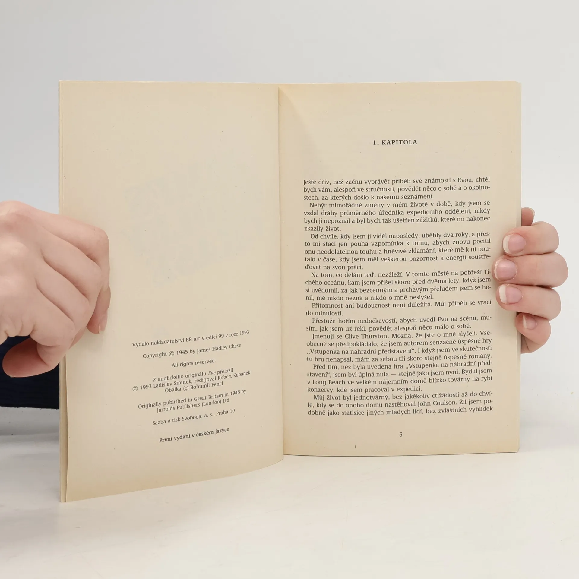 Román s psychologickými prvky z prostředí filmových ateliérů. Clive Thurston je sobecký a bezohledný hollywoodský spisovatel. Je slavný, ale jeho kariéra je založena na podvodu a lži. Před lety se totiž zmocnil skvělé divadelní hry a celý čas ji vydává za své dílo. Clive pečlivě střeží tajemství své popularity, potom však potká Evu. Záhadnou a krutou žena s tváří dítěte. A z podvodníka se stává muž, posedlý vražednou zničující touhou.