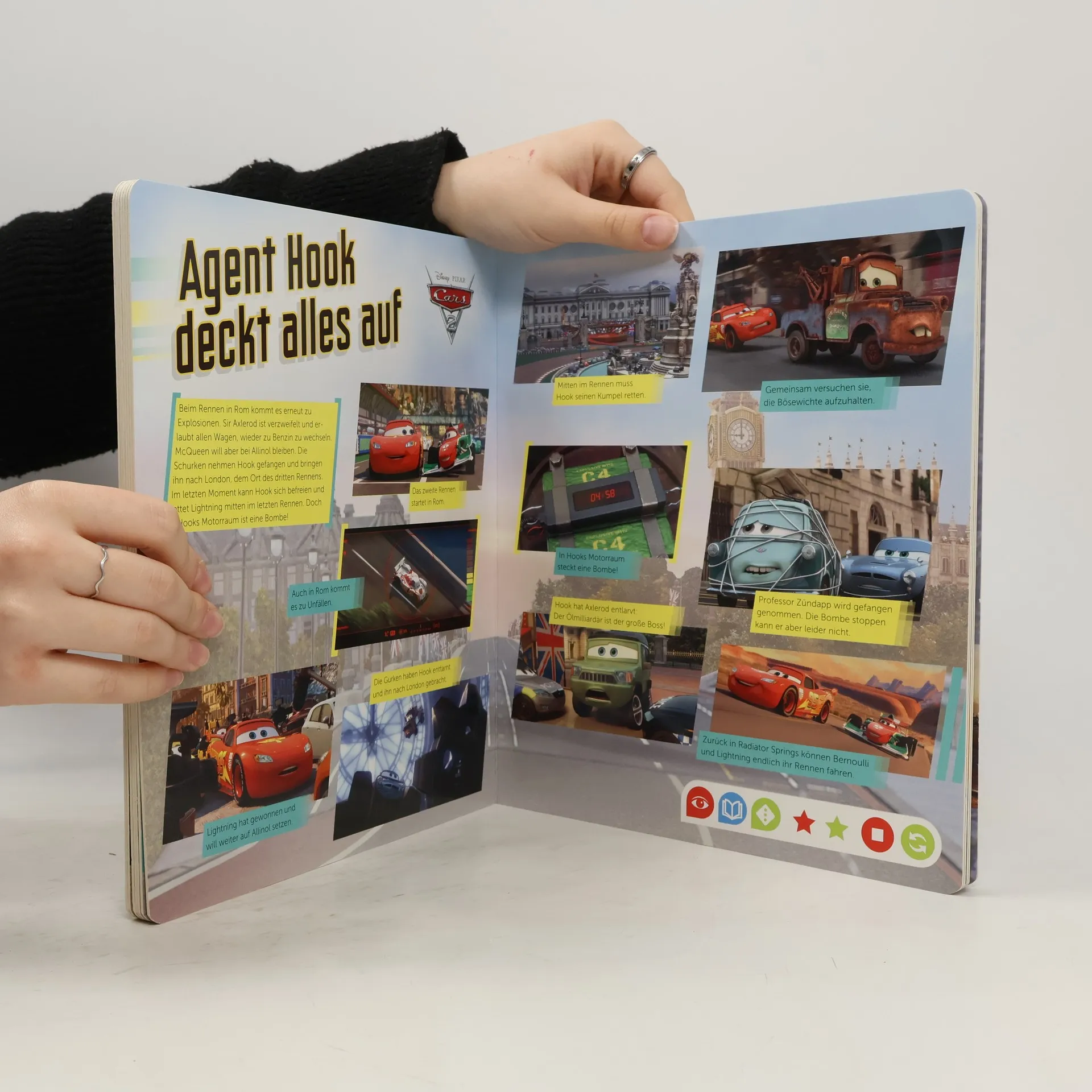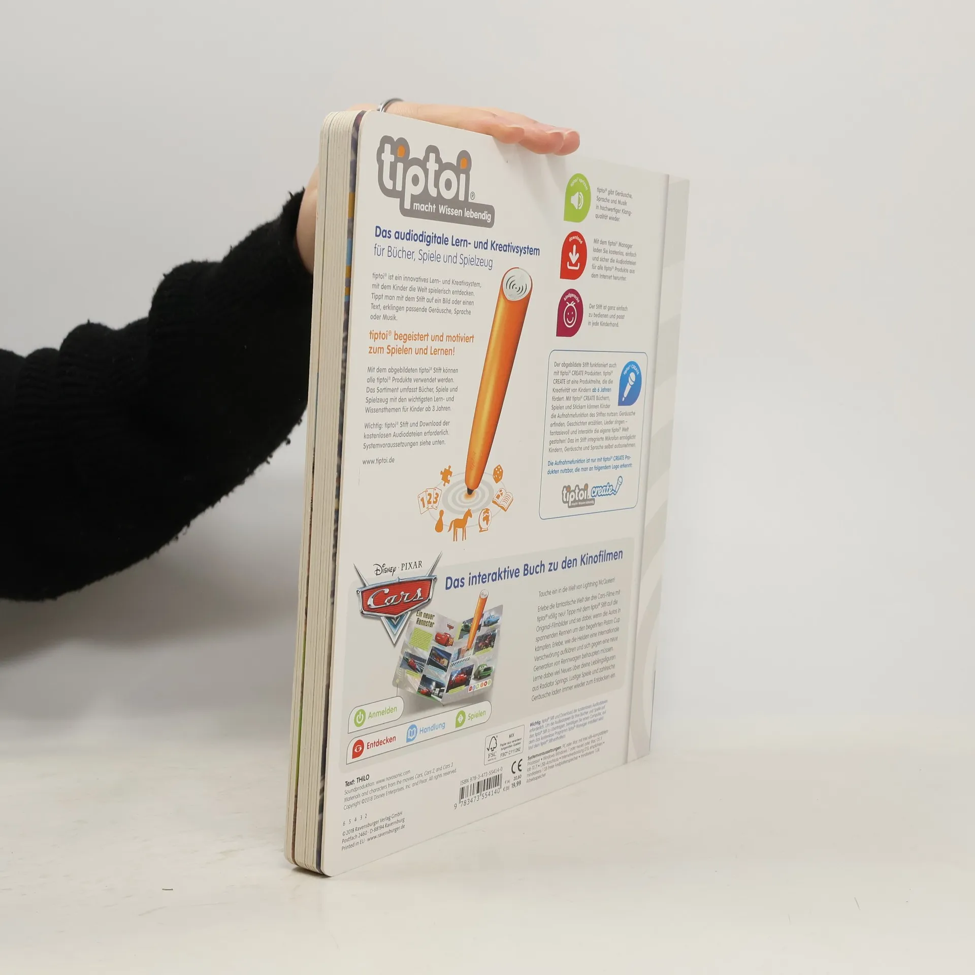 tiptoi trifft auf Lightning McQueen! Mit dem tiptoi-Stift tauchen die Kinder in die beliebte Welt der Cars-Filme ein. Das Buch beinhaltet die Handlung der drei Animationsfilme. Neben der packenden Geschichte des kleinen Helden auf vier Rädern begeistern spannende Informationen sowie lustige, interaktive Spiele die kleinen Fans zusätzlich. Inmitten von Motorengeheul, Reifenquietschen und Zuschauerjubel können Fans der Cars-Filme die kultigen Autos zum Leben erwecken. Mit dem tiptoi-Stift erfahren sie viel Wissenswertes über Radiator Springs, Lightning McQueen und seine Freunde. Zusammen mit ihren Lieblingshelden machen sie sich auf den Weg, um Bösewichte zu schnappen und neue Herausforderer im Piston Cup zu bezwingen. Die Tonspuren aus den Filmen machen die Live-Action-Bilder im Buch lebendig und sorgen dabei für den perfekten Sound. Die Handlung wird kindgerecht und spannend erzählt und die wichtigsten Figuren vorgestellt. In über 10 Spielen können die Kinder ihr Wissen testen, ihre Geschicklichkeit unter Beweis stellen und lustige Aufgaben lösen. tiptoi-Stift nicht enthalten. Muss separat erworben werden.