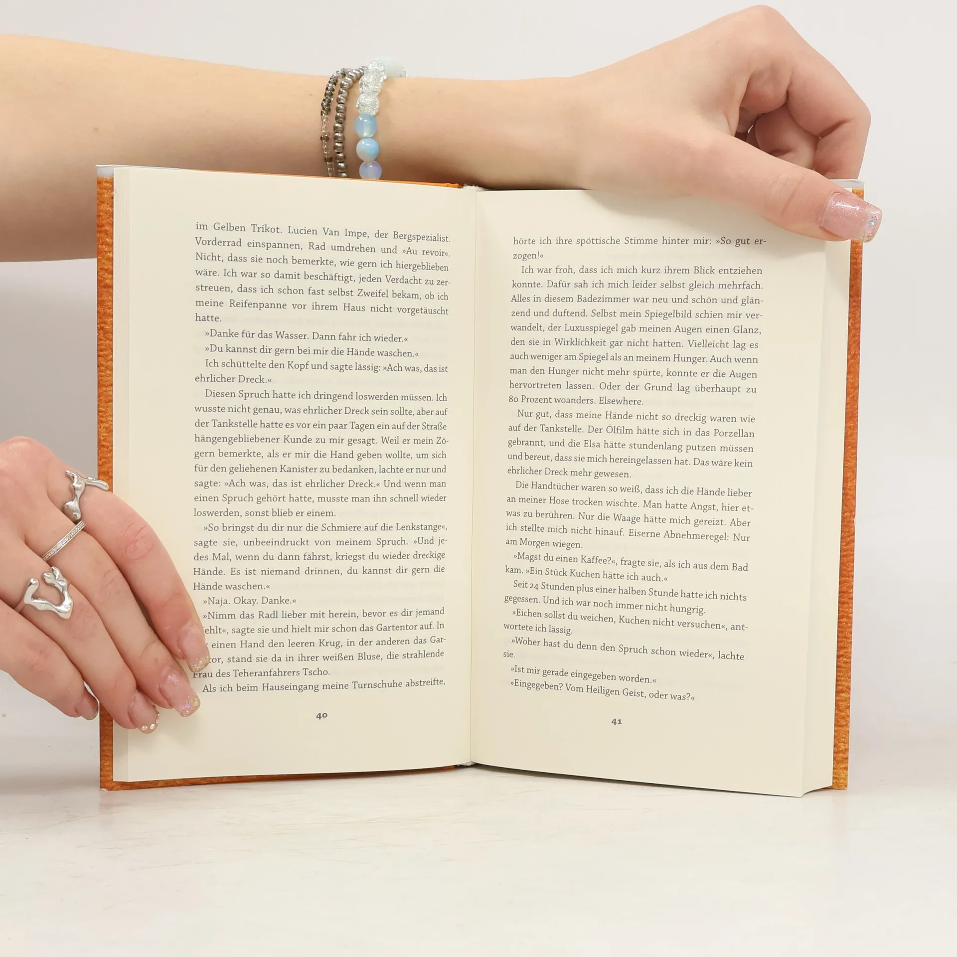 Der Dreizehnjährige, der auf die Waage stieg und sich um den Verstand verliebte „Mit vier Jahren brach ich mir zum ersten Mal das Bein. Mein großer Bruder hatte zusammen mit seinen noch größeren Freunden und deren noch größeren Brüdern eine Sprungschanze gebaut. Eine Schanze baute man, indem man eine Schaufel organisierte und Schnee auf einen Haufen schaufelte. Dann trampelte man darauf herum. Dann fuhr der Beste los und sprang am weitesten. Nach ihm der Zweitbeste am zweitweitesten. Zuletzt mein Bruder. Dann ich.“ Auf diese Weise lernt der junge Mann früh den Vorteil von Unfällen schätzen: Trostschokolade. Und er lernt den Nachteil von Trostschokolade kennen: Übergewicht. Mit 13 beginnt er in den Sommerferien eine radikale Abmagerungskur. Weil ihn unvorbereitet dieses zauberhafte Lächeln getroffen hat. Das Gute am Verlieben: Die Elsa. Das Problem am Verlieben: Ihr Ehemann. Der Lastwagenfahrer Tscho. Mit jedem Kilo, das der junge Mann abnimmt, sieht er seine Chancen bei ihr steigen. Als sie mit ihm auch noch eine Spazierfahrt in ihrem neuen Renault 5 unternimmt, heizt das seinen Kalorienverbrauch weiter an. Und der Ferienjob auf der Tankstelle hat den großen Vorteil, dass er immer genau weiß, wann Elsas Mann gerade nach Griechenland oder in ein noch ferneres Land aufgebrochen ist. Eines Tages taucht der gefürchtete Lastwagenfahrer aber doch überraschend zwischen Diesel-Zapfsäule und Tankstellenshop auf und macht dem jungen Mann ein Angebot, das er nicht ablehnen kann.