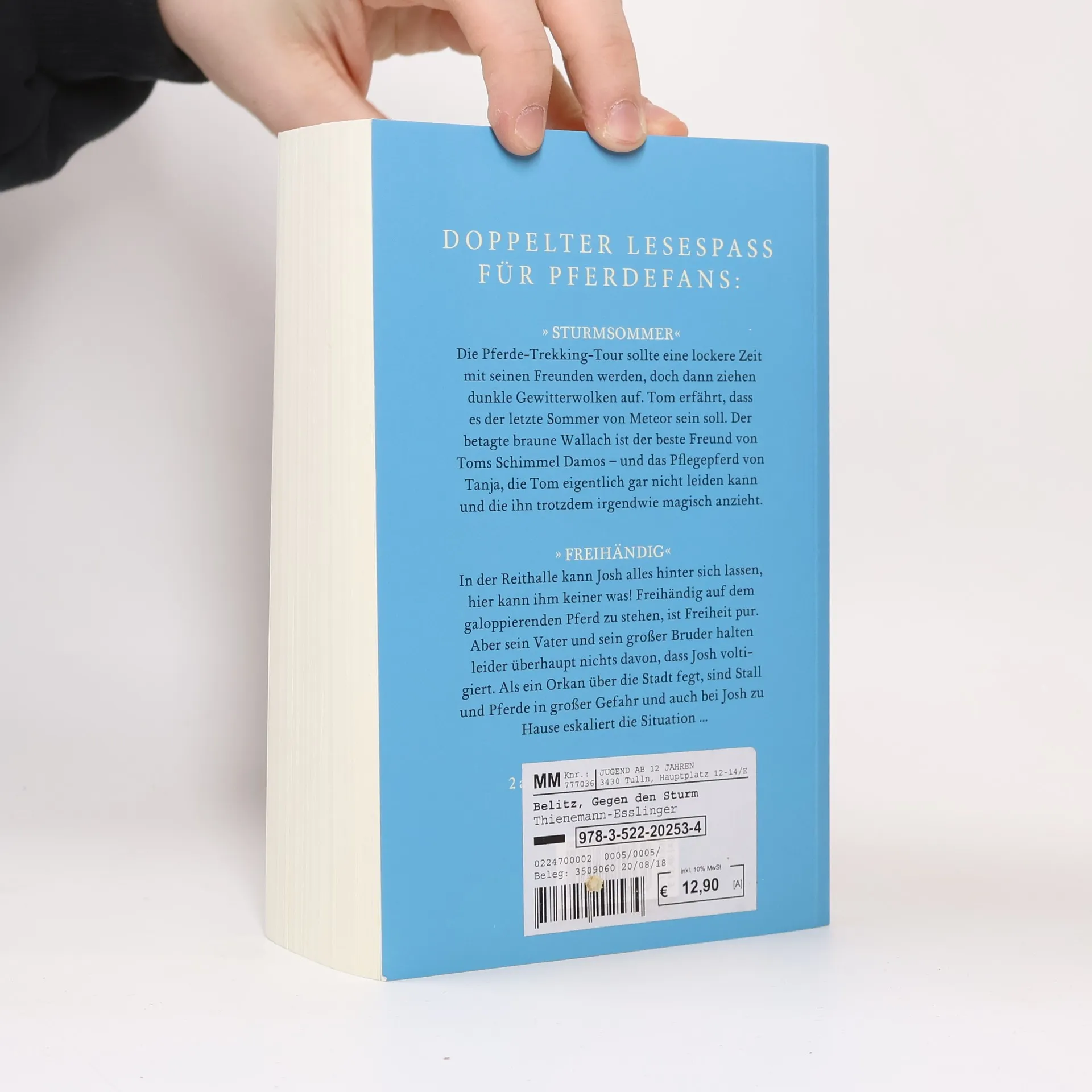 Doppelter Lesespaß für Pferdefans ab 12 Jahren. Sturmsommer: Die Pferde-Trekking-Tour sollte eine lockere Zeit mit seinen Freunden werden, doch dann ziehen dunkle Gewitterwolken auf. Tom erfährt, dass es der letzte Sommer von Meteor sein soll. Der betagte braune Wallach ist der beste Freund von Toms Schimmel Damos – und das Pflegepferd von Tanja, die Tom eigentlich gar nicht leiden kann und die ihn trotzdem irgendwie magisch anzieht ... Freihändig: In der Reithalle kann Josh alles hinter sich lassen – hier kann ihm keiner was! Freihändig auf dem galoppierenden Pferd zu stehen, ist Freiheit pur. Aber sein Vater und sein großer Bruder halten leider überhaupt nichts davon, dass Josh voltigiert. Als ein Orkan über die Stadt fegt, sind Stall und Pferde in großer Gefahr und auch bei Josh zu Hause eskaliert die Situation ... 2 außergewöhnliche Pferderomane in einem Band.