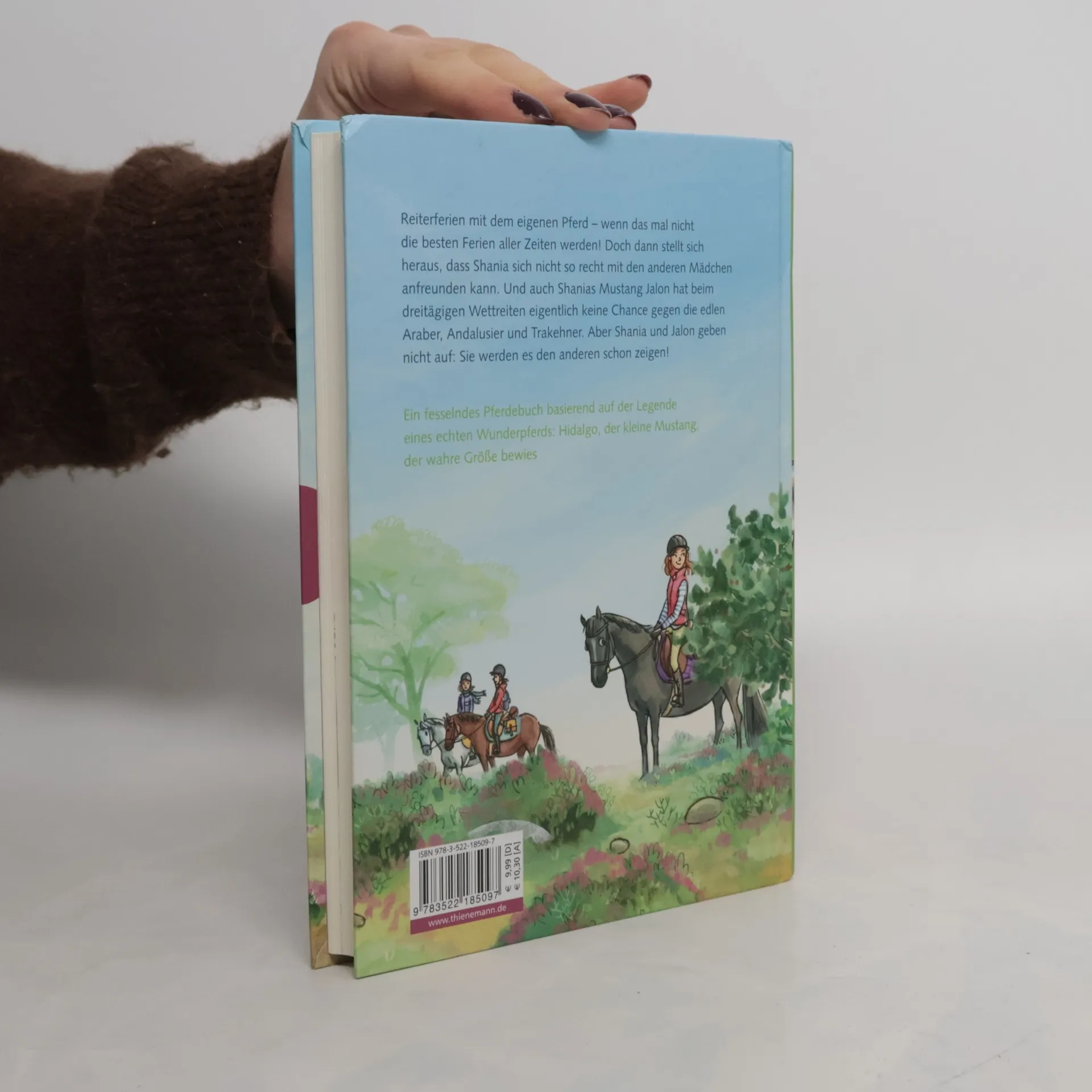 Lesespaß für Pferdemädchen ab 8 Jahren, inspiriert von einer bekannten Legende. Reiterferien mit dem eigenen Pferd – wenn das mal nicht die besten Ferien aller Zeiten werden! Doch dann stellt sich heraus, dass Shania sich nicht so recht mit den anderen Mädchen anfreunden kann. Und auch Shanias Mustang Jalon hat beim dreitägigen Wettreiten eigentlich keine Chance gegen die edlen Araber, Andalusier und Trakehner. Aber Shania und Jalon geben nicht auf: Sie werden es den anderen schon zeigen! Ein fesselndes Pferdebuch basierend auf der Legende eines echten Wunderpferds: Hidalgo, der kleine Mustang, der wahre Größe bewies.