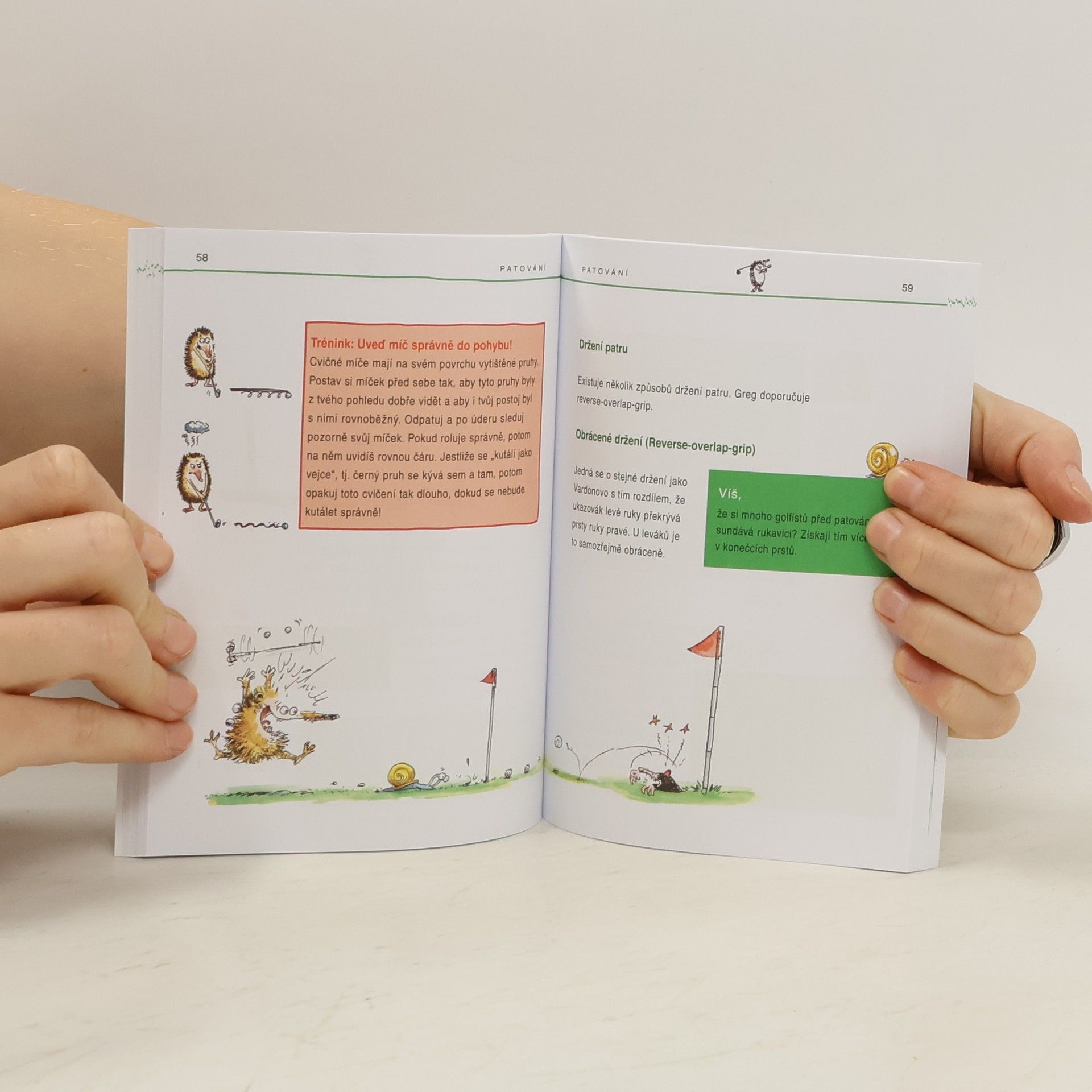 Vzhůru na golf! Knížka přibližuje golfovou metodiku dětským hráčům golfu. Začátečníky pomůže zbavit strachu z neznáma a pokročilejším hráčům přiblíží, co jim ještě chybí k dosažení optimálního švihu. Publikace je doplněna praktickými obrázky a maskot ježeček všem zájemcům o golf ukazuje, jak na to!