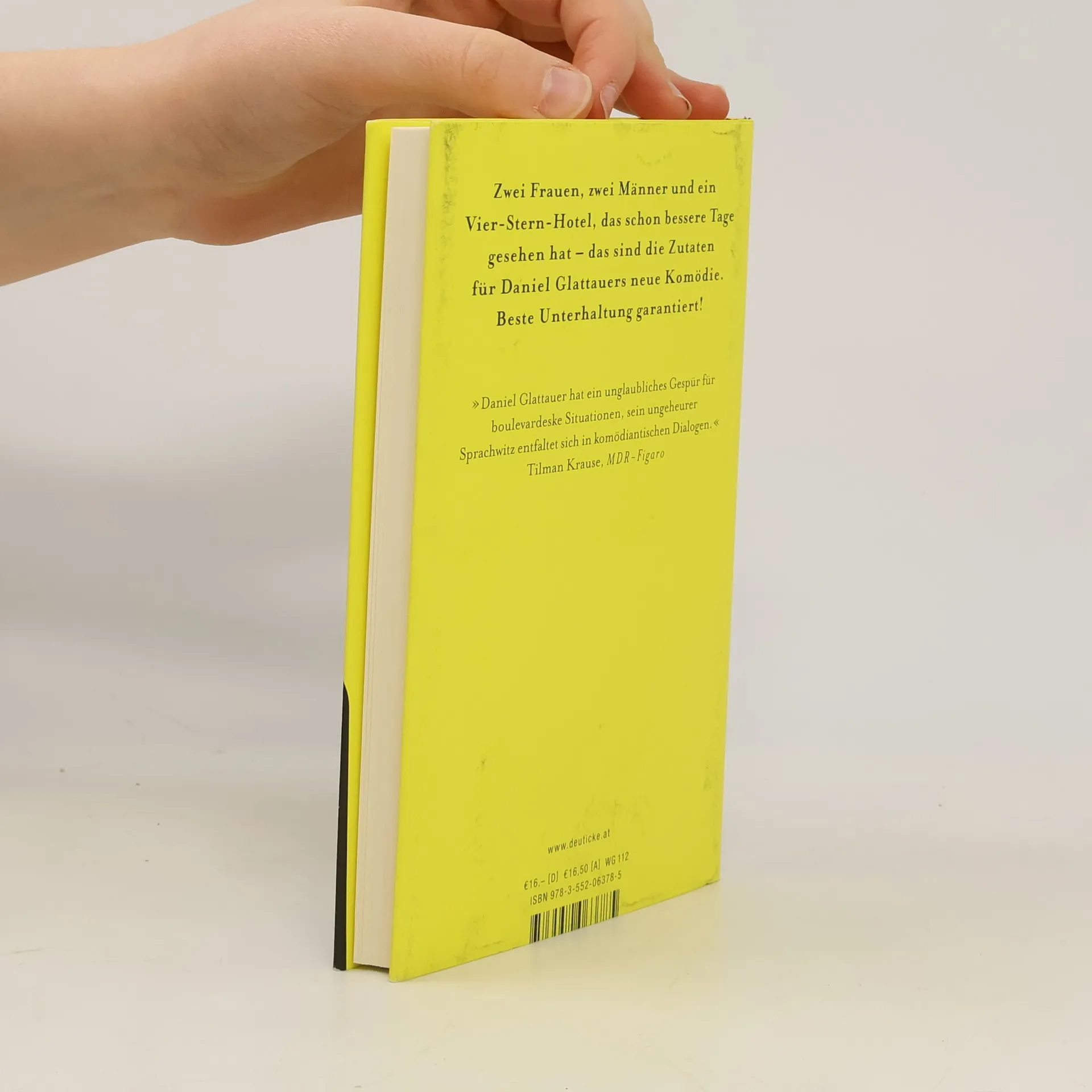 Ein Vier-Sterne-Hotel, das schon bessere Tage gesehen hat, und ein berühmter Schriftsteller, dessen Stern allerdings auch schon einmal heller leuchtete, sind die Zutaten für Daniel Glattauers neue Komödie: beste Unterhaltung garantiert! Wie in seinem Erfolgsstück „Die Wunderübung“, das mittlerweile auch das Kinopublikum begeistert, gelingt es Daniel Glattauer in „Vier Stern Stunden“, mit wenigen Strichen ein Szenario zu entwerfen, das unterhält, verblüfft und berührt.