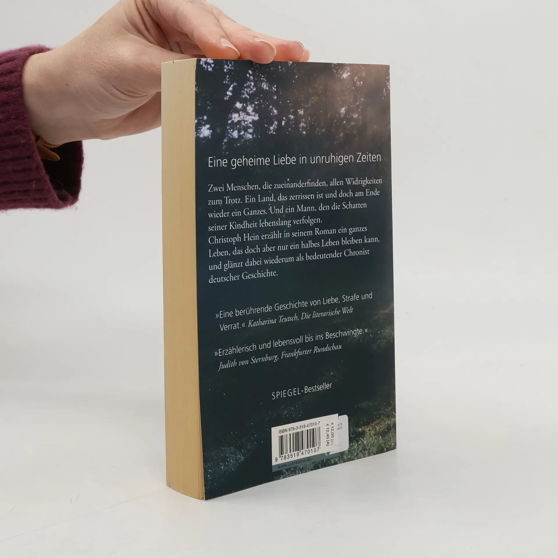 Friedeward liebt Wolfgang. Und Wolfgang liebt Friedeward. Sie sind jung, genießen die Sommerferien, fahren mit dem Fahrrad die weite Strecke ans Meer und reden stundenlang über Gott und die Welt. Sie sind glücklich, wenn sie zusammen sind, und das scheint ihnen alles zu sein, was sie brauchen. Doch keiner darf wissen, dass sie mehr sind als beste Freunde. Es sind die 1950er-Jahre, sie leben im katholischen Heiligenstadt, und für die Menschen um sie herum, besonders für Friedewards strenggläubigen Vater, ist ihre Liebe eine Sünde. Käme ihre Beziehung ans Licht, könnten sie alles verlieren. Als sie zum Studium nach Leipzig gehen – Friedeward studiert Germanistik, Wolfgang Musik –, finden sie dort eine Welt gefeierter Intellektueller, alles flirrt geradezu vor lebendigem Geist. Und sie lernen Jacqueline kennen, die ihnen gesteht, dass sie eine heimliche Beziehung zu einer Dozentin hat. Zu viert besuchen sie die legendären Vorlesungen im Hörsaal vierzig, gehen ins Theater, tauchen gemeinsam ein ins geistige Leben der Stadt. Und da reift in den drei Freunden der Plan: Wäre es nicht die perfekte ›Tarnung‹, wenn einer von ihnen Jacqueline zum Schein heiraten würde? In seinem Roman erzählt der große deutsche Chronist Christoph Hein bewegend von einer Liebe, die über Jahre hinweg allen Widrigkeiten trotzt, und zeichnet zugleich ein lebendiges Panorama deutschen Geisteslebens.