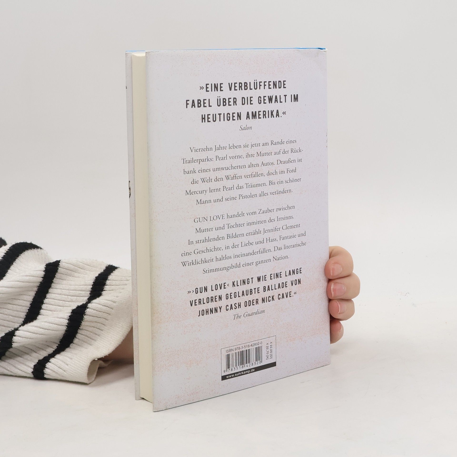 Seit ihrer Geburt lebt Pearl im Auto, sie vorne, ihre Ausreißer-Mutter auf der Rückbank. Vierzehn Jahre stehen die beiden jetzt schon am Rande eines Trailerparks irgendwo in Florida. Draußen vor der Windschutzscheibe ist die Welt den Waffen verfallen: Kinder wachsen mit Pistolen statt Haustieren auf, Schießübungen immer und überall, mal Alligatoren, mal den Fluss, mal Polizisten im Visier, und sonntags sitzt man beim Gottesdienst mit der geschulterten Schrotflinte in der ersten Reihe. Doch im Ford Mercury wirken andere Kräfte, hier lernt Pearl das Träumen. Bis ein schöner Mann und seine Pistolen alles verändern … Gun Love handelt vom Zauber zwischen Mutter und Tochter inmitten des Irrsinns. In strahlenden Bildern erzählt Jennifer Clement eine Geschichte, in der Liebe und Hass, Fantasie und Wirklichkeit haltlos ineinander fallen. Das literarische Stimmungsbild einer ganzen Nation.