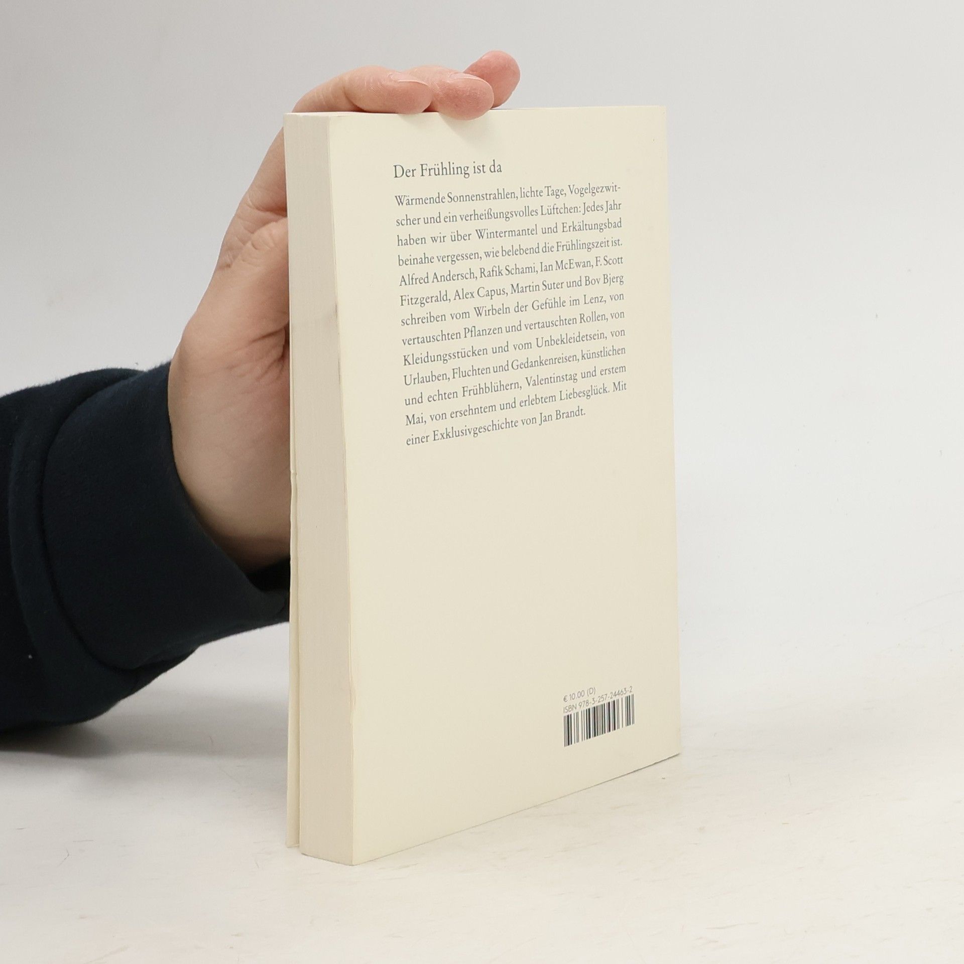 Wärmende Sonnenstrahlen, lichte Tage, Vogelgezwitscher und ein verheißungsvolles Lüftchen: Jedes Jahr haben wir über Wintermantel und Erkältungsbad beinahe vergessen, wie belebend die Frühlingszeit ist. Alfred Andersch, Rafik Schami, Ian McEwan, F. Scott Fitzgerald, Alex Capus, Martin Suter und Bov Bjerg schreiben vom Wirbeln der Gefühle im Lenz, von vertauschten Pflanzen und vertauschten Rollen, von Kleidungsstücken und vom Unbekleidetsein, von Urlauben, Fluchten und Gedankenreisen, künstlichen und echten Frühblühern, Valentinstag und erstem Mai, von ersehntem und erlebtem Liebesglück.