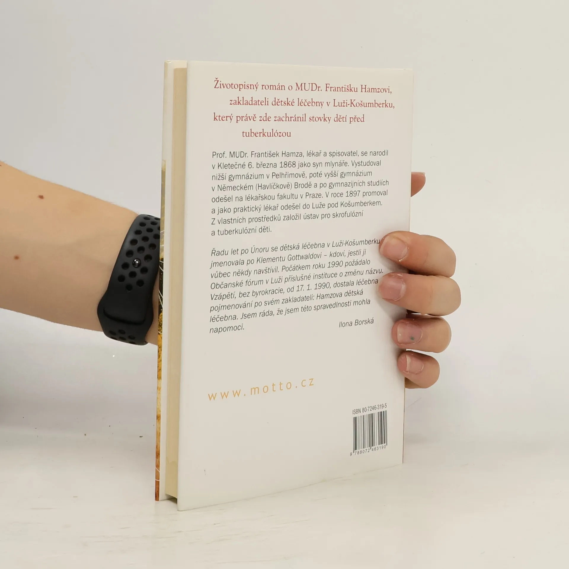 Životopisný román o MUDr. Františku Hamzovi, zakladateli dětské léčebny Prof. MUDr. František Hamza, lékař a spisovatel, se narodil v Kletečné 6. března 1868 jako syn mlynáře. Vystudoval nižší gymnázium v Pelhřimově, poté vyšší gymnázium v Německém (Havlíčkově) Brodě a po gymnazijních studiích odešel na lékařskou fakultu v Praze. V roce 1897 promoval a jako praktický lékař odešel do Luže pod Košumberkem. Z vlastních prostředků založil ústav pro skrofulózní a tuberkulózní děti. Tento ústav byl v RU jedinečný, Hamza zde dokázal spojit různé praktiky z jiných světových léčeben. Chtěl toho dokázat víc, chtěl provětrat staré zvyky a zvýšit hygienickou úroveň jak měst, tak venkova. Kvůli pracovním povinnostem se odstěhoval do Prahy a když začala být těžkopádná jako kdysi RU odešel do Brna....
