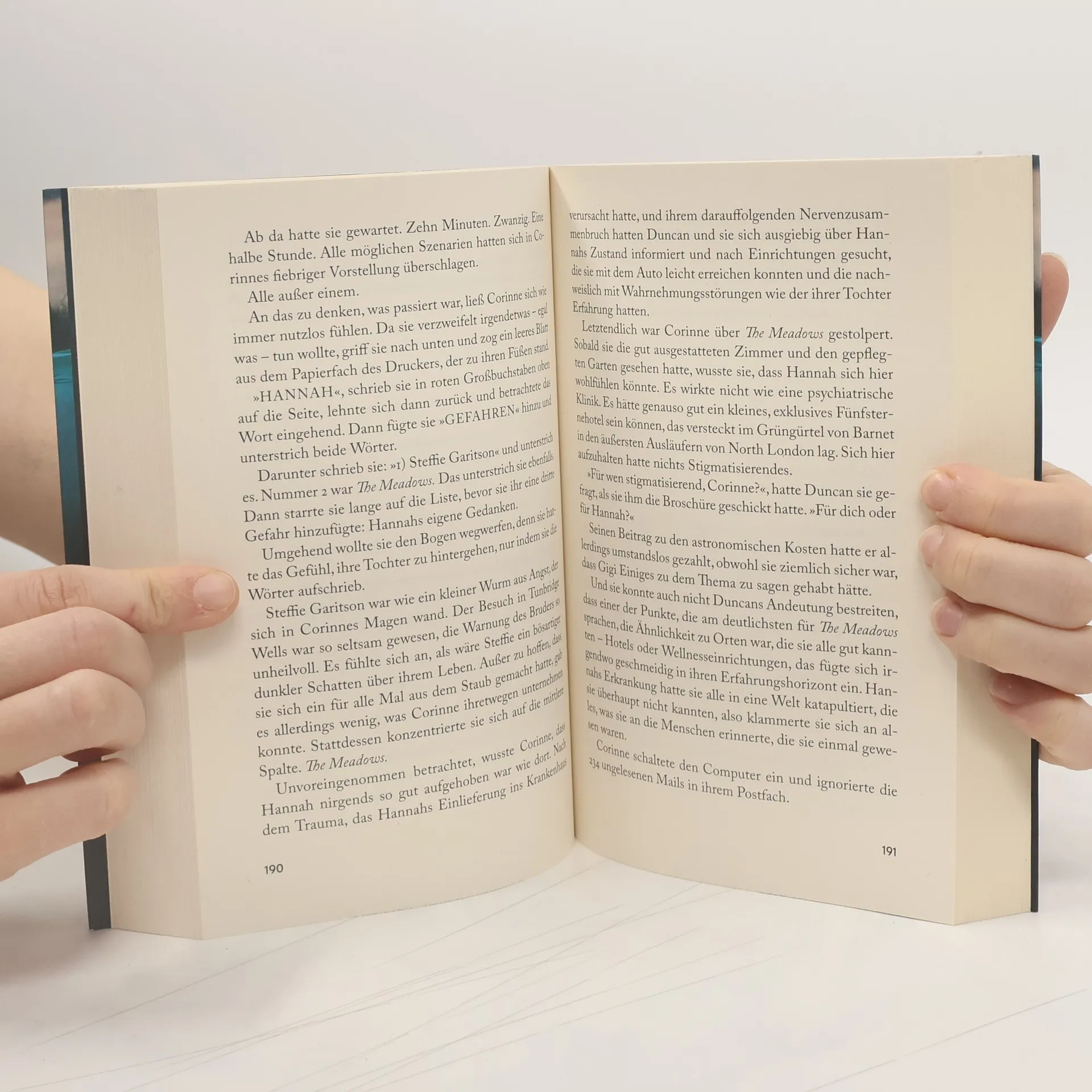 Eingesperrt mit einem Mörder. Jeder ist verdächtigt. Es gibt kein Entkommen. Hannah hat ein ganz normales Leben – einen liebenden Ehemann, einen guten Job. Dann geschieht etwas Schreckliches, und Hannah verliert alles. Jetzt sitzt sie in einer psychiatrischen Klinik. An einem Ort, der sicher sein sollte. Doch Patienten sterben. Selbstmord, sagen die Ärzte. Hannah weiß, dass sie lügen. Aber niemand glaubt ihr. Kann sie irgendjemanden von der Wahrheit überzeugen, bevor der Mörder wieder zuschlägt? Oder wird sie sein nächstes Opfer sein?