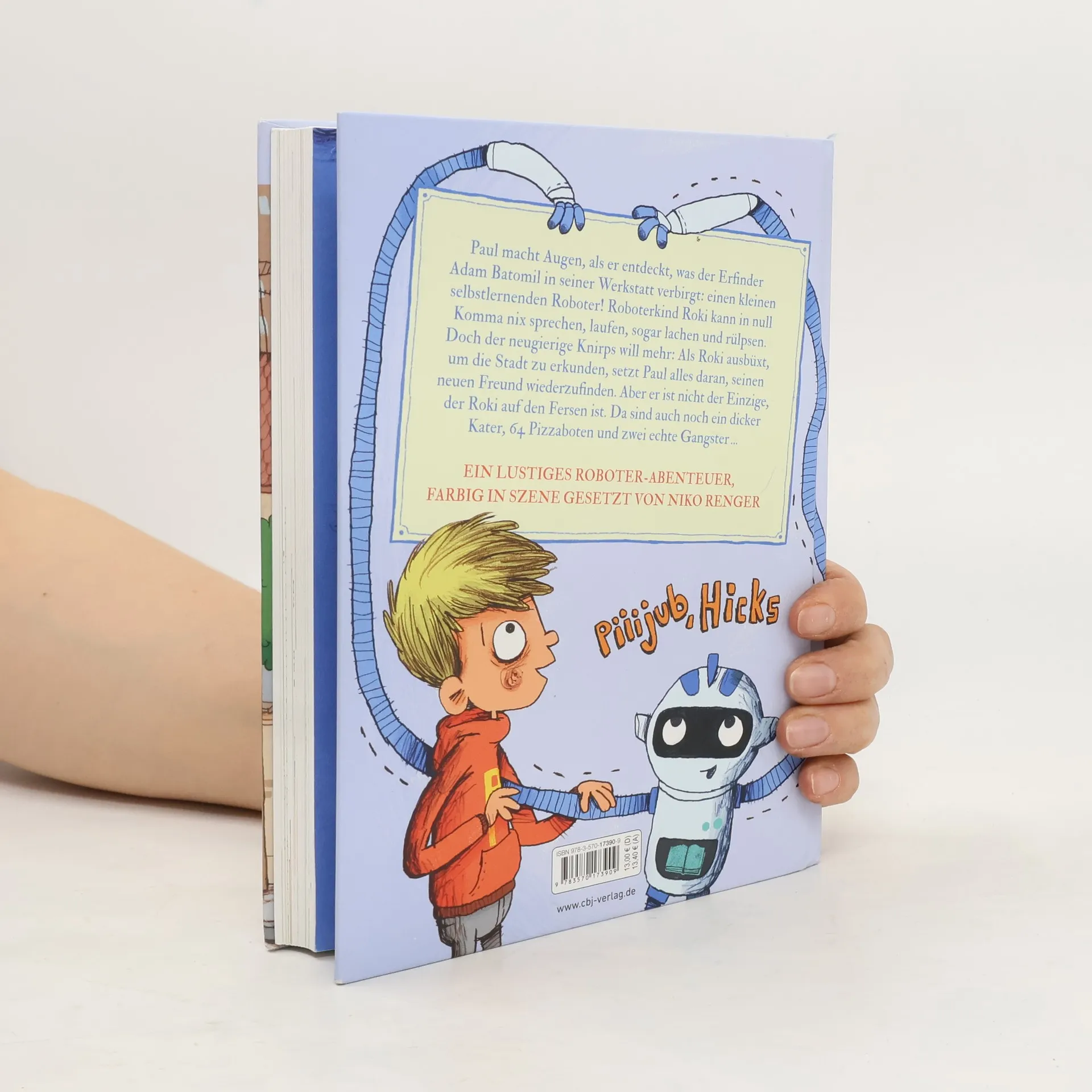 Paul macht Augen, als er entdeckt, was der Erfinder Adam Batomil in seiner Werkstatt verbirgt: einen kleinen selbstlernenden Roboter! Roboterkind Roki ist blitzgescheit und lernt in null Komma nix sprechen, laufen, aufräumen – sogar lachen und rülpsen! Roki muss unbedingt geheim bleiben und darf Adams Werkstatt nicht verlassen. Aber da Rokis Roboterhirn immer Hunger auf Neues hat, wird dem neugierigen Knirps schon bald langweilig. Als Roki ausbüxt, um die Welt zu erkunden, setzt Paul alles daran, seinen Roboterfreund wieder einzufangen ...