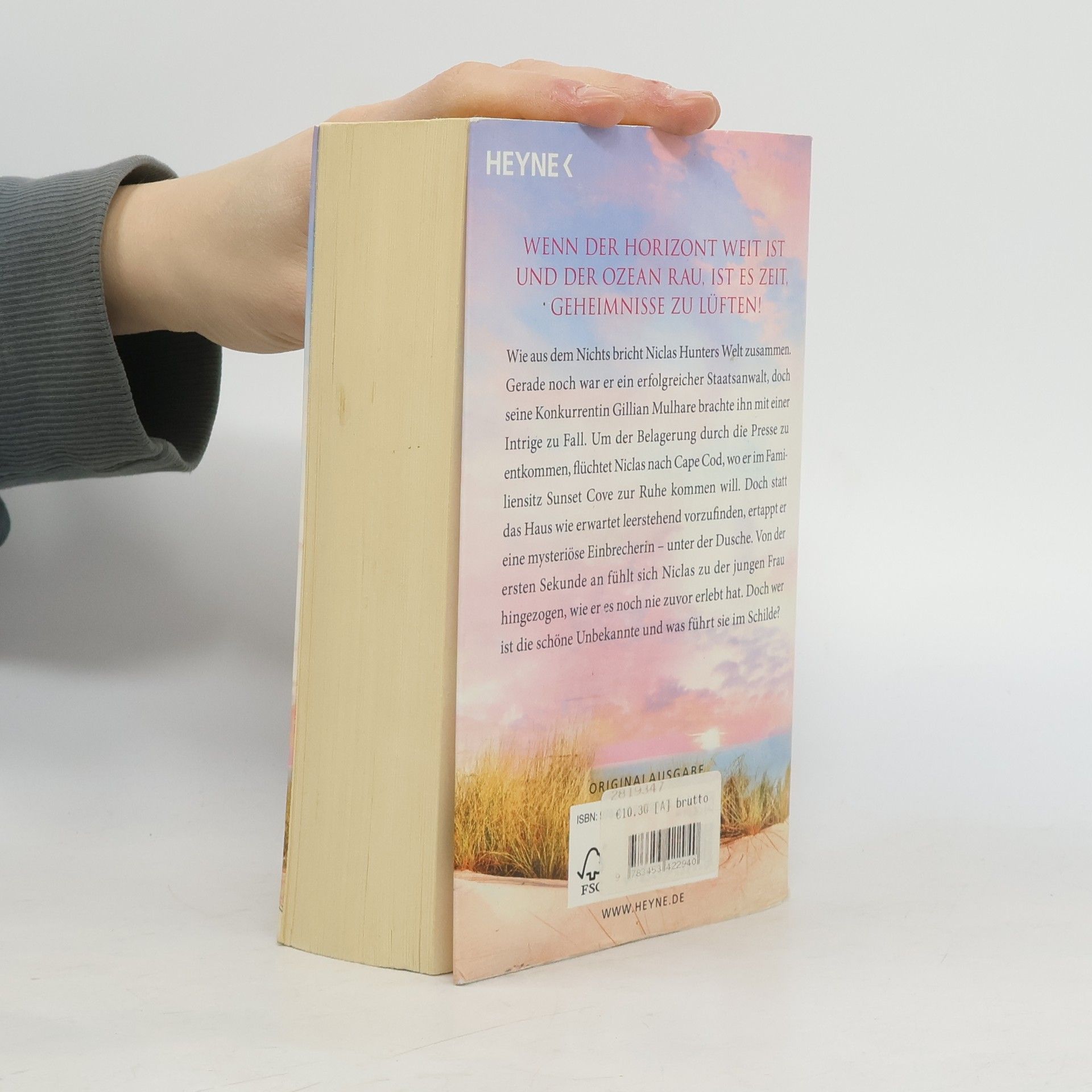 Wenn der Horizont weit ist und der Ozean rau, ist es Zeit, Geheimnisse zu lüften! Wie aus dem Nichts bricht Niclas Hunters Welt zusammen. Gerade noch war er ein erfolgreicher Staatsanwalt, doch seine Konkurrentin Gillian Mulhare brachte ihn mit einer sorgsam eingefädelten Intrige zu Fall. Um der Belagerung durch die Presse zu entkommen, flüchtet Niclas nach Cape Cod, wo er im Familiensitz Sunset Cove zur Ruhe kommen will. Doch statt das Haus wie erwartet leerstehend vorzufinden, ertappt er eine mysteriöse Einbrecherin – unter der Dusche. Von der ersten Sekunde an fühlt sich Niclas zu der jungen Frau hingezogen, wie er es noch nie zuvor erlebt hat. Doch wer ist die schöne Unbekannte und was führt sie im Schilde? Aufwändig und liebevoll gestaltete Ausgabe mit farbigen Karten und Innenklappen!