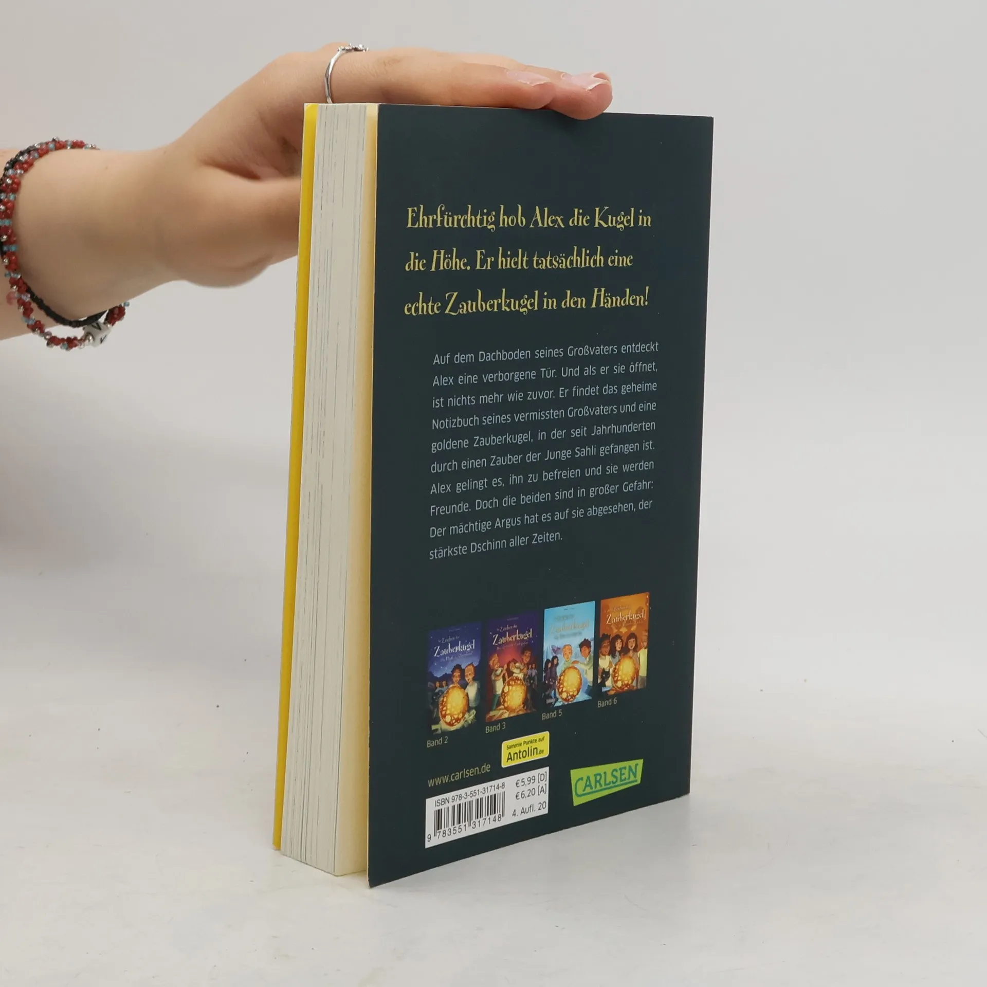Bd. 1 aktuell auf Platz 10 der ZEITLeo-Bestsellerliste (Mai 2020) *** Ein neues Leseabenteuer von Stefan Gemmel, in dem sich alles um die Macht einer Zauberkugel dreht. *** Beim Stöbern auf dem Dachboden seiner Großeltern entdeckt Alex eine verborgene Tür. Nachdem er sie öffnet, ist nichts mehr wie zuvor. Er findet eine Zauberkugel mit einem Kugelgeist darin und der kennt auch noch Alex’ verschollenen Großvater! Alex kann sein Glück kaum fassen. Doch das ändert sich schnell, denn mit der Befreiung des Kugelgeists Sahli hat er nicht nur drei Wünsche frei, sondern auch dessen mächtigen Schöpfer Argus gegen sich aufgebracht – den stärksten Dschinn aller Zeiten. --- Im September 2015 hat Stefan Gemmel zu diesem Buch die größte und ungewöhnlichste Lesereise aller Zeiten gemacht: In nicht einmal zwei Wochen hat der Autor 81 Lesungen vor insgesamt rund 15.500 Kindern gemeistert. Das ist ein Weltrekord, und darum erhielt Stefan Gemmel dafür auch eine Urkunde und einen Eintrag ins Guinness-Buch der Rekorde!
