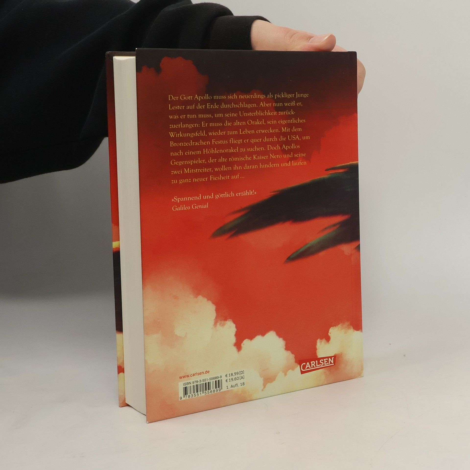 Apollo muss sich ja neuerdings als pickliger Junge Lester auf der Erde durchschlagen. Aber nun weiß er, was er tun muss, um seine Unsterblichkeit zurückzuerlangen: Er muss die alten Orakel, sein eigentliches Wirkungsfeld, wieder zum Leben erwecken. Mit dem Bronzedrachen Festus fliegt er quer durch die USA, um nach einem Höhlenorakel zu suchen. Doch seine Gegenspieler, der alte römische Kaiser Nero und seine zwei Mitstreiter, wollen ihn daran hindern und laufen zu ganz neuer Fiesheit auf …
