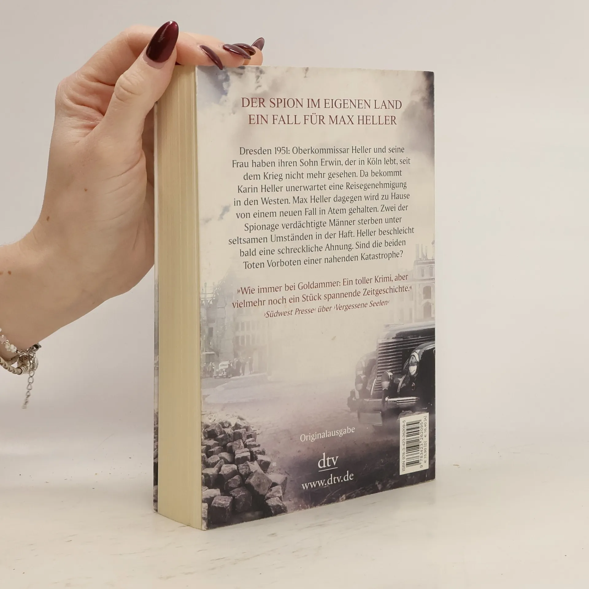 Spion im eigenen LandIm Spätsommer 1951 kehrt Oberkommissar Heller mit seiner Familie aus dem staatlich genehmigten Ostseeurlaub nach Dresden zurück. Für seine Frau Karin geht die Fahrt gleich weiter, denn sie hat überraschend die Reiseerlaubnis in den Westen zu Sohn Erwin erhalten. Heller ist besorgt. Doch sein neuer Fall lässt ihm keine Zeit zum Grübeln: Zwei unter Spionageverdacht stehende Männer, Zeugen Jehovas, sterben in ihren Gefängniszellen. Und es geschehen weitere mysteriöse Todesfälle. Bei einem der Opfer wird eine geheimnisvolle Botschaft gefunden: »Eine Flut wird kommen.« Heller beschleicht eine schreckliche Ahnung.