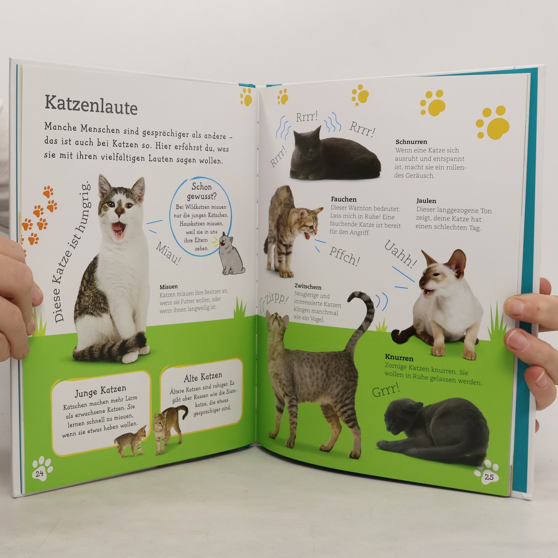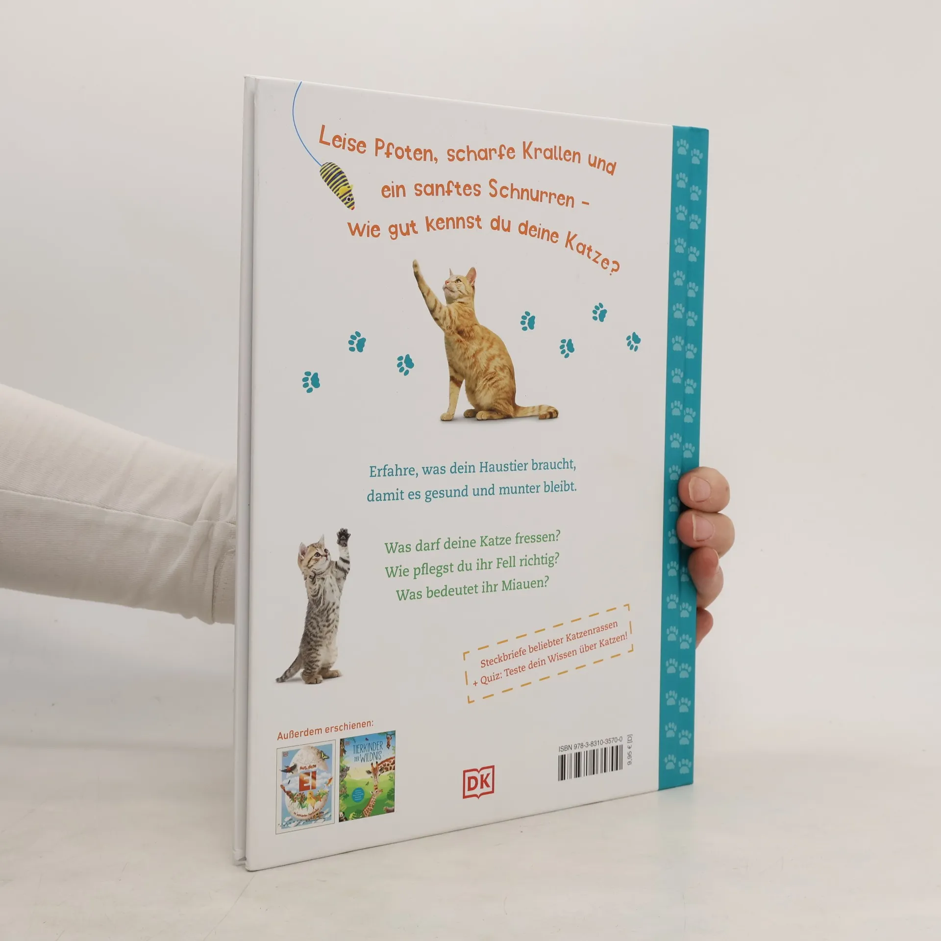 Füttern, Spielen, Streicheln! Kinder, die selbst eine Katze besitzen oder davon träumen, erfahren in diesem liebevoll gestalteten Haustierbuch, wie sie für ihr Lieblingstier sorgen und Körpersprache, Laute oder Verhalten richtig deuten. Das charmante Tierbuch vermittelt durch einen Mix aus Texten, Fotos und Illustrationen erste Infos zu den beliebtesten Haustieren absolut altersgerecht. Am Ende des Buches können die Kleinen ihr Wissen in einem Quiz auf die Probe stellen.Kinder möchten einfach alles über ihr Lieblingstier wissen. In diesem Katzenbuch finden sie die Antworten auf ihre Fragen: Was sind Schnurrhaare und wofür werden sie gebraucht, warum können Katzen auch im Dunkeln sehen und was macht sie zu guten Jägern? Außerdem lernen Kinder mit diesem Tierbuch, die Sprache der Katzen zu verstehen: Was bedeuten aufgestellte Haare und ein runder Rücken, was sagt die Katze mit einem Schnurren und was mit einem Fauchen?Von Britisch Kurzhaar über Perser bis Birma stellt das Katzenbuch die beliebtesten Rassen in kleinen Steckbriefen vor. Es verrät, welche täglichen Pflichten ein Besitzer erfüllen muss und welche Ausstattung die eigene Katze braucht – zum Beispiel Kratzbaum, Katzenklo oder Transportbox. Von diesem Kinderbuch wird jeder Tierfreund begeistert sein!
