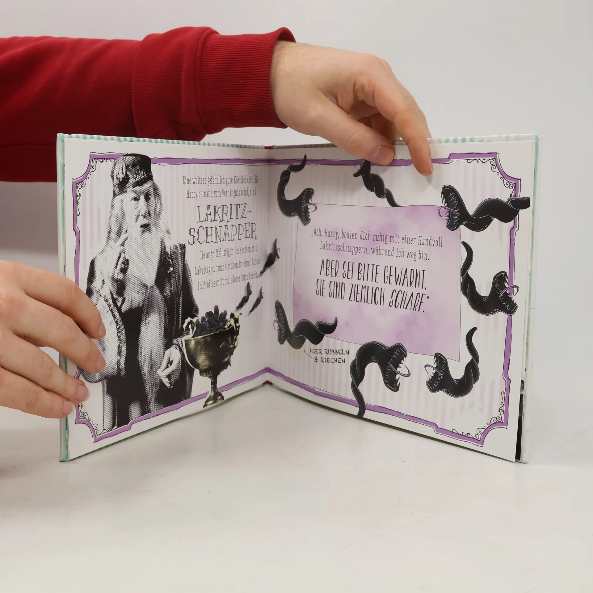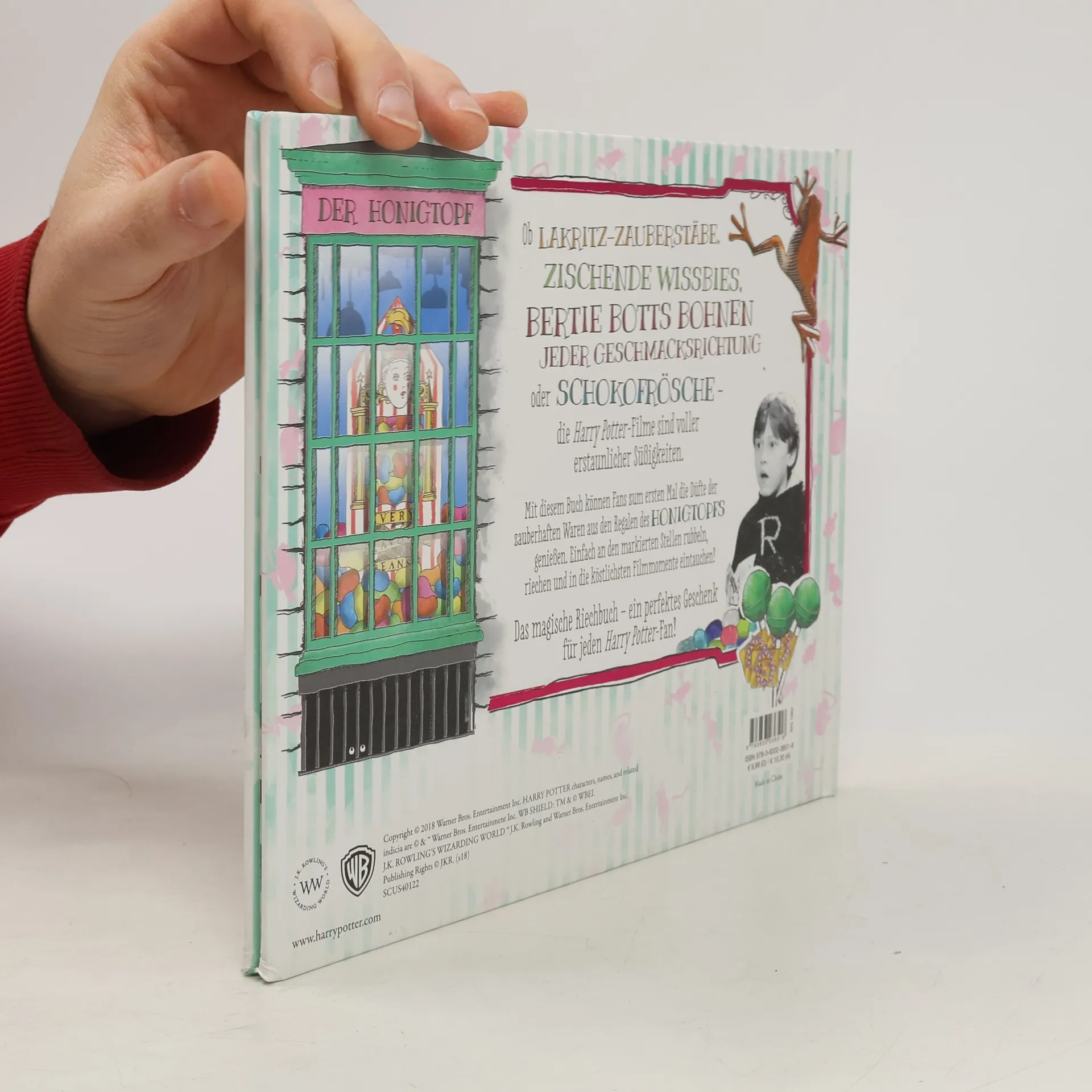 Ob LAKRITZ-ZAUBERSTÄBE, ZISCHENDE WISSBIES, BERTIE BOTTS BOHNEN JEDER GESCHMACKSRICHTUNG oder SCHOKOFRÖSCHE – die Harry Potter-Filme sind voller erstaunlicher Süßigkeiten. Mit diesem Buch können Fans zum ersten Mal die Düfte der zauberhaften Waren aus den Regalen des HONIGTOPFS genießen. Einfach an den markierten Stellen rubbeln, riechen und in die köstlichsten Filmmomente eintauchen! Das magische Riechbuch – ein perfektes Geschenk für jeden Harry Potter-Fan!