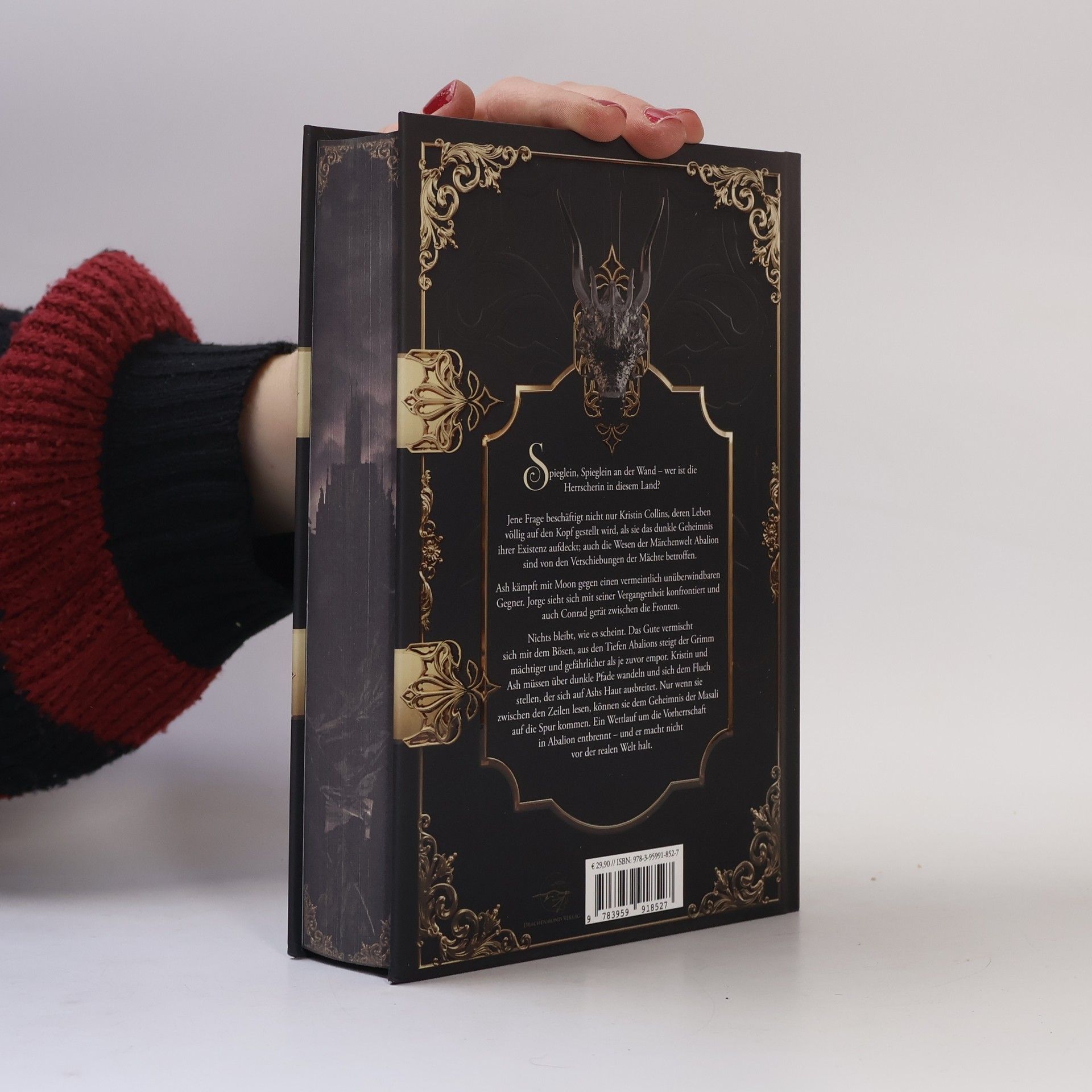 Spieglein, Spieglein an der Wand wer ist die Herrscherin in diesem Land?Jene Frage beschäftigt nicht nur Kristin Collins, deren Leben völlig auf den Kopf gestellt wird, als sie das dunkle Geheimnis ihrer Existenz aufdeckt; auch die Wesen der Märchenwelt Abalion sind von den Verschiebungen der Mächte betroffen. Ash kämpft mit Moon gegen einen vermeintlich unüberwindbaren Gegner. Jorge sieht sich mit seiner Vergangenheit konfrontiert und auch Conrad gerät zwischen die Fronten. Nichts bleibt, wie es scheint. Das Gute vermischt sich mit dem Bösen, aus den Tiefen Abalions steigt der Grimm mächtiger und gefährlicher als je zuvor empor.Kristin und Ash müssen über dunkle Pfade wandeln und sich dem Fluch stellen, der sich auf Ashs Haut ausbreitet. Nur wenn sie zwischen den Zeilen lesen, können sie dem Geheimnis der Masali auf die Spur kommen. Ein Wettlauf um die Vorherrschaft in Abalion entbrennt und er macht nicht vor der realen Welt halt.