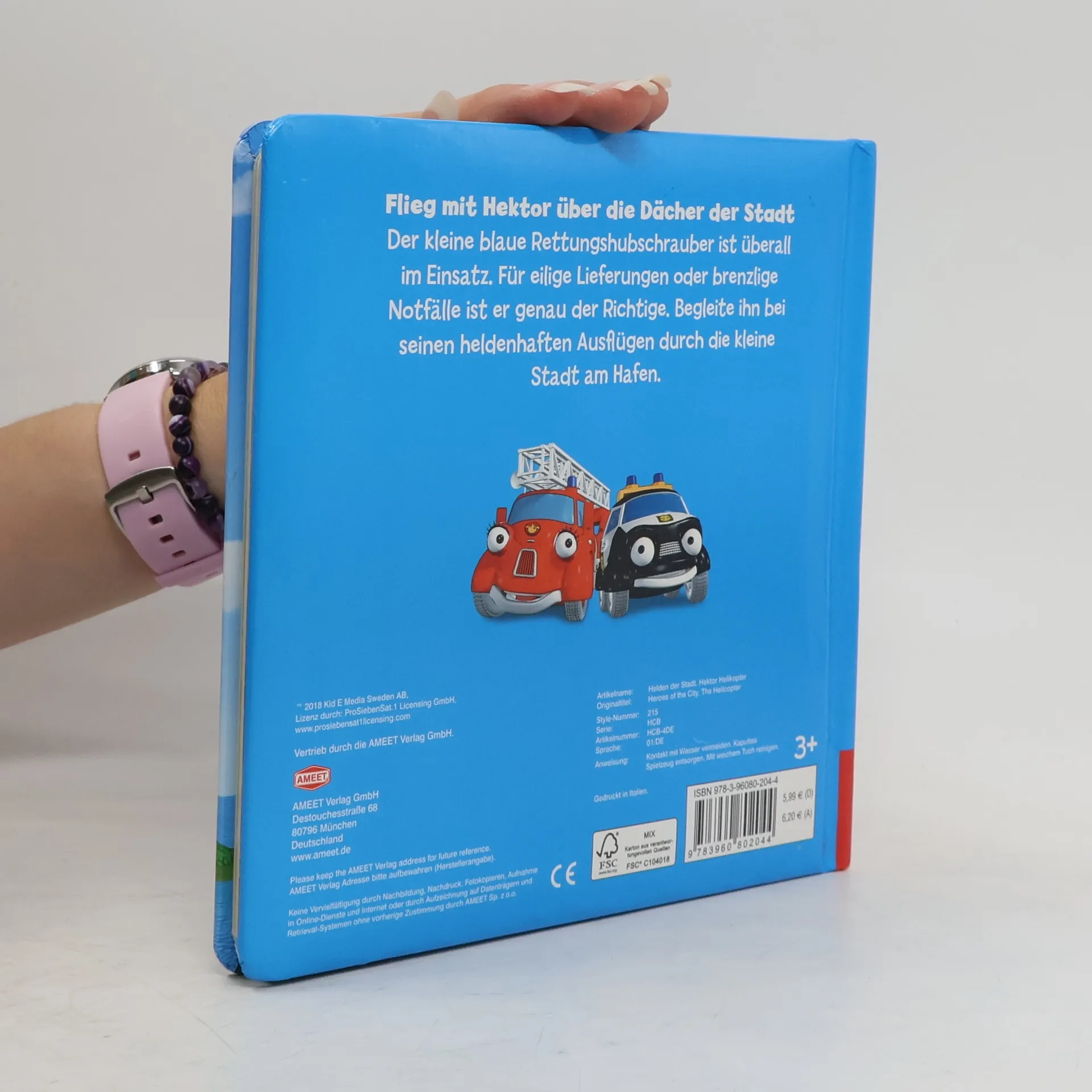 Hektor behält den Überblick Der kleine blaue Rettungshubschrauber ist überall im Einsatz. Für eilige Lieferungen oder brenzlige Notfälle ist er genau der Richtige, denn hoch oben in der Luft hat Hektor immer alles im Blick. Kinder ab drei Jahren können ihn in diesem Pappbilderbuch bei seinen Ausflügen durch die Stadt begleiten. • Spannende Flugmanöver über der ganzen Stadt mit Hektor Helikopter • Große Bilder der beliebten Figuren zum Staunen und Miterleben • Stabile Pappen mit abgerundeten Ecken für kleine Helden