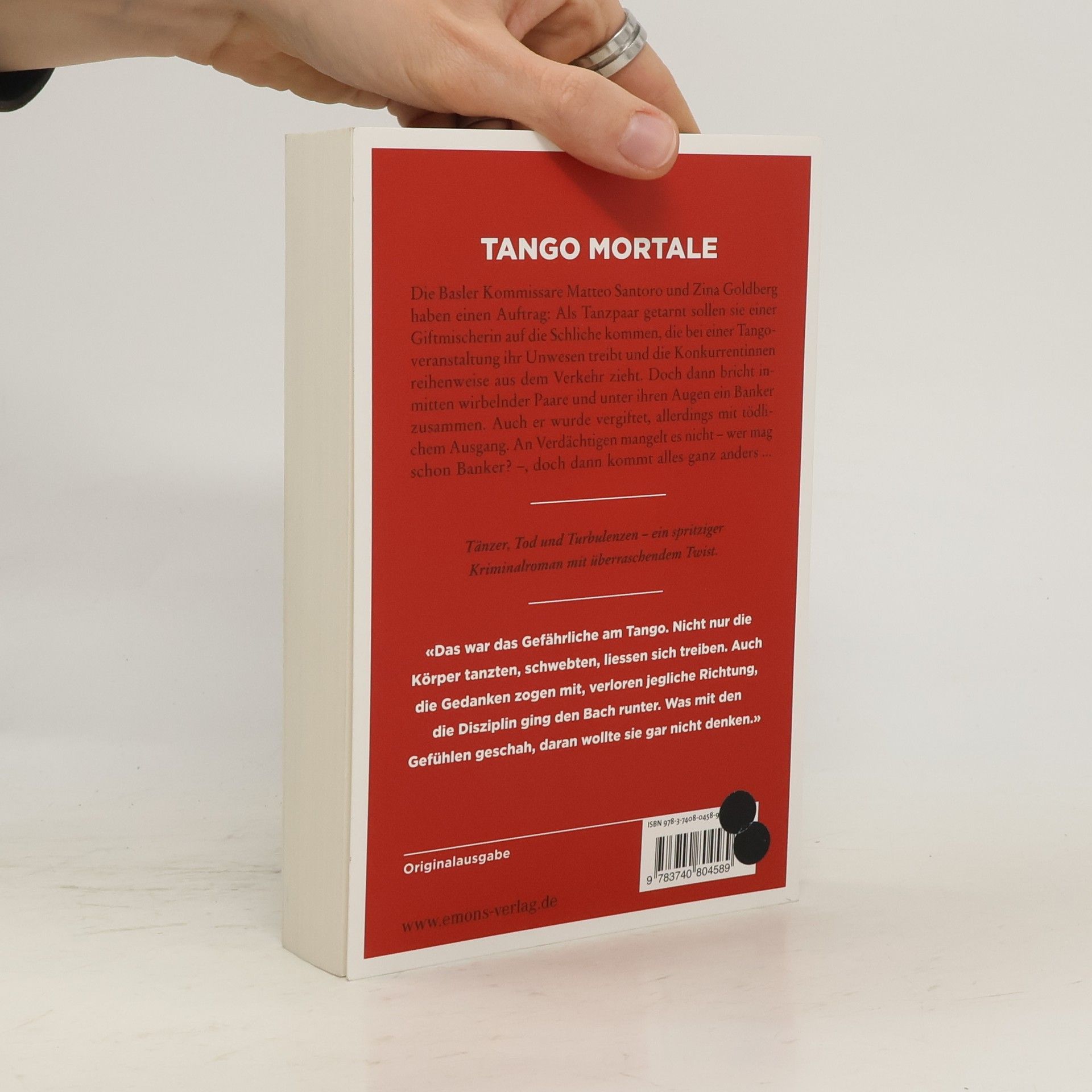 Ein spritziger Kriminalroman mit überraschendem Twist. Die Basler Kommissare Matteo Santoro und Zina Goldberg haben einen Auftrag: Als Tango tanzendes Paar getarnt sollen sie einer Giftnudel auf die Schliche kommen, die bei einer Tangoveranstaltung ihr Unwesen treibt und die Konkurrentinnen reihenweise aus dem Verkehr zieht. Doch dann stirbt inmitten wirbelnder Paare und unter ihren Augen ein Banker. Auch er wurde vergiftet, allerdings mit tödlichem Ausgang. An Verdächtigen mangelt es nicht – wer mag schon Banker? –, aber dann kommt alles ganz anders.