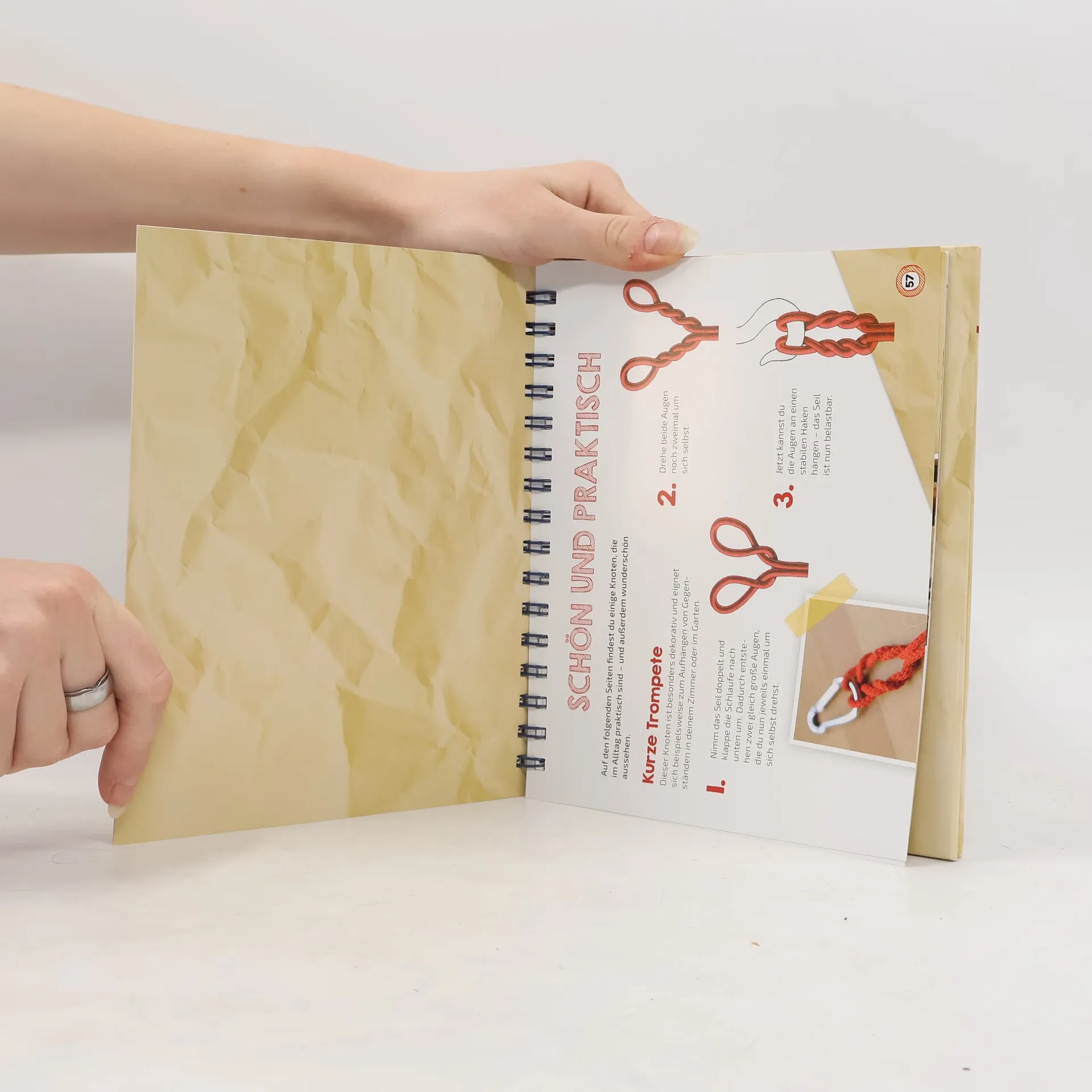 30 Knoten, Schritt-für-Schritt, anschaulich mit Illustrationen erklärt. Durch das praktische Aufstellerbuch hat man die Hände frei zum Knoten und kann mit den beigelegten Fäden direkt loslegen.