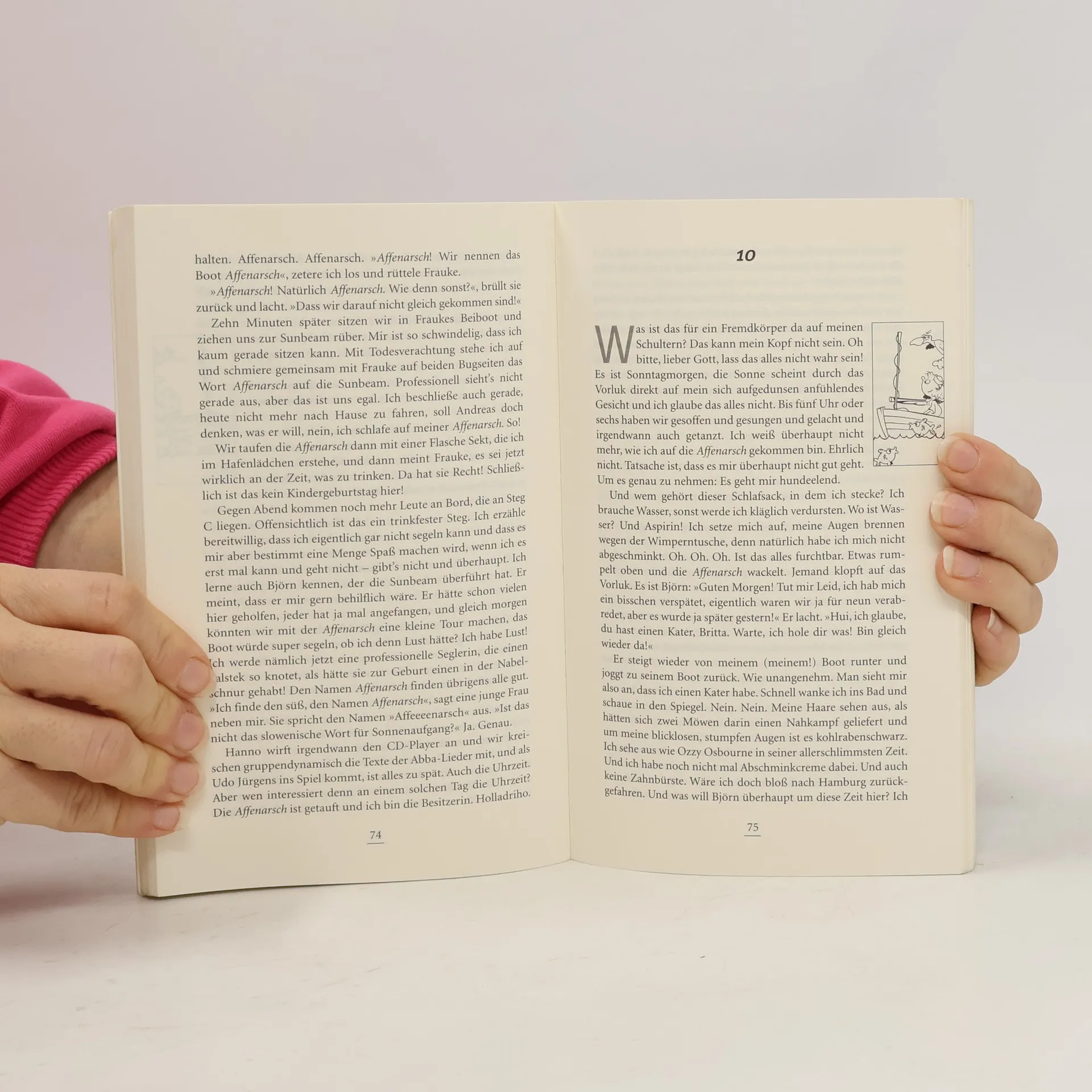 'Segeln? Ja, bin ich denn wahnsinnig?', fragt sich Britta Schüchen, 34, Immobilienmaklerin, naturblond. Doch ihrem Mann Andreas zuliebe macht sie mit und sieht sich mit ungeahnten Herausforderungen konfrontiert. Wie kommt man ohne Sprungbrett an Bord? Muss man ein Palstek gut durchbraten? Darf man ein Segelboot ungestraft 'Affenarsch' nennen? Doch es kommt anders als gedacht. Britta wird vom Segelvirus infiziert, und Andreas schwächelt
