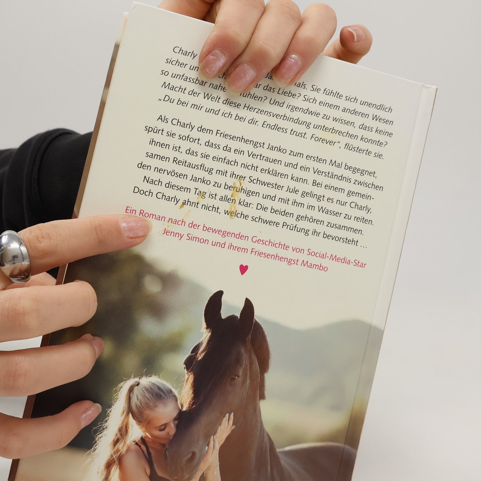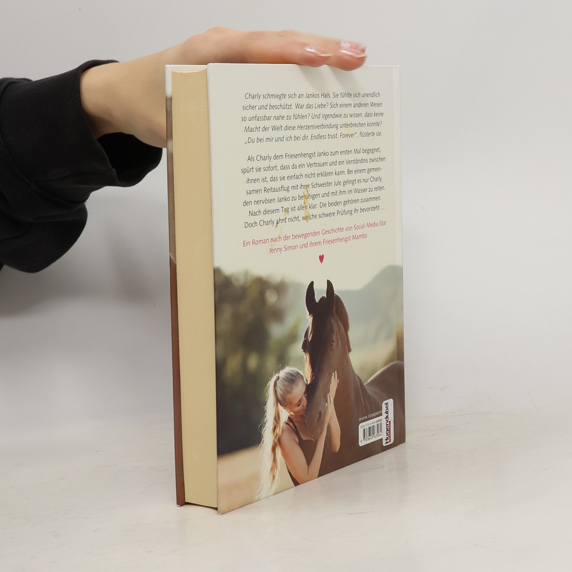Als Charly dem Friesenhengst Janko zum ersten Mal begegnet, spürt sie sofort, dass da ein Vertrauen und ein Verständnis zwischen ihnen ist, das sie einfach nicht erklären kann. Dabei ist sie doch eigentlich leidenschaftliche Dressurreiterin und ihre Schwester Jule der begeisterte Friesenfan! Bei einem gemeinsamen Reitausflug gelingt es nur Charly, den nervösen Janko zu beruhigen und mit ihm im Wasser zu reiten. Ein wichtiger Moment für die beiden, den Charlys Schwester mit der Kamera festhält. Nach diesem Tag ist allen klar: Charly und Janko gehören zusammen. Und ihre besondere Geschichte bewegt auch Tausende andere, die die Aufnahmen des neuen Traum-Duos auf YouTube verfolgen. Doch Charly ahnt nicht, welche schwere Prüfung ihr bevorsteht … Ein Roman nach der bewegenden Geschichte von Social-Media-Star Jenny Simon und ihrem Friesenhengst Mambo. Hunderttausende folgen Jenny und Mambo auf YouTube, Instagram und Facebook. Jenny bildete den Friesen aus, kämpfte darum, ihn zu behalten, und musste schließlich seinen Tod im Sommer 2017 verarbeiten. Ihre Fans halten ihr im Netz weiterhin die Treue.