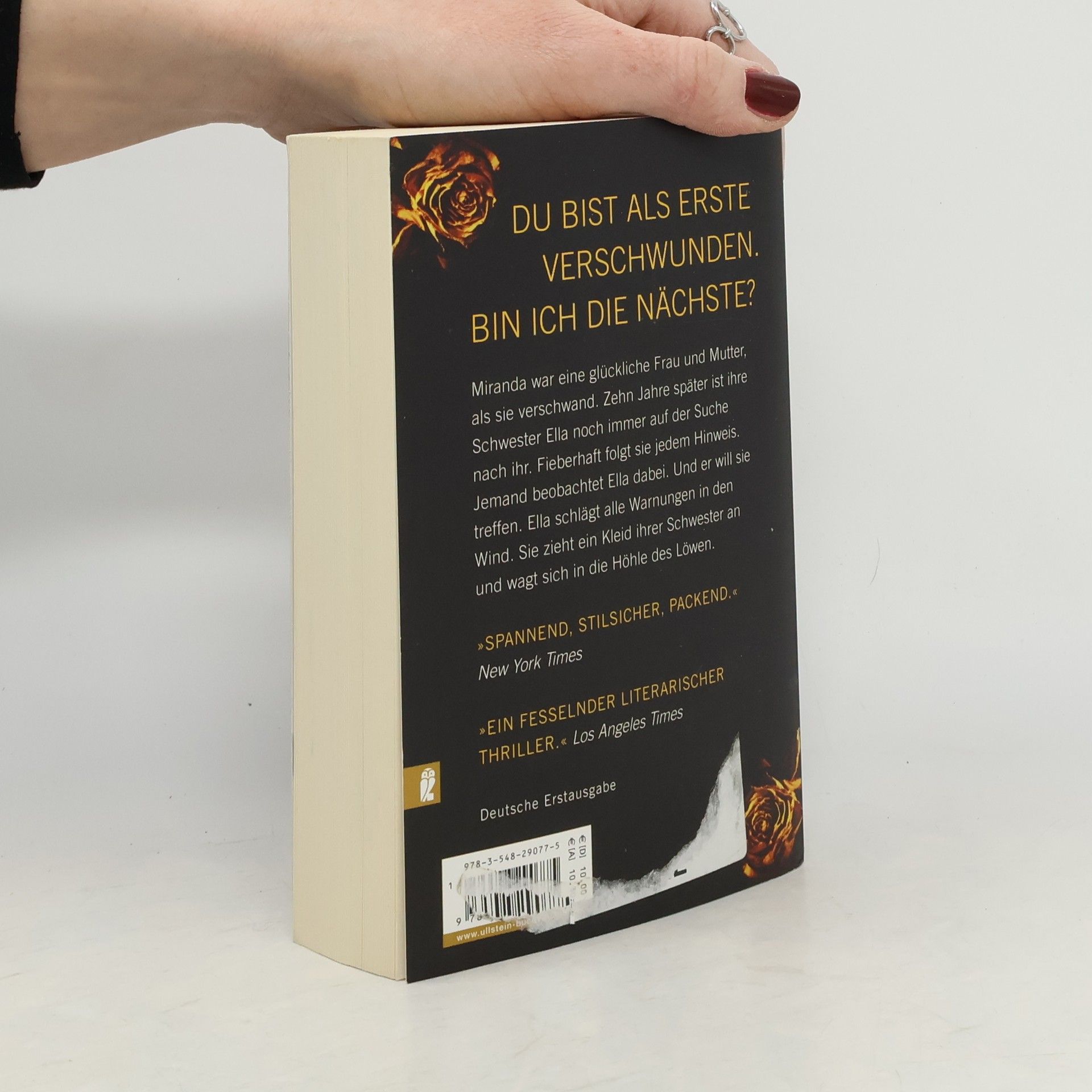Du bist als Erste verschwunden. Bin ich die Nächste? Miranda war eine glückliche Frau und Mutter, als sie verschwand. Niemand fand auch nur eine einzige Spur von ihr. Zehn Jahre später ist ihre Schwester Ella noch immer auf der Suche – nach der Vermissten, nach der Wahrheit und danach, wer Miranda eigentlich war. Fieberhaft folgt sie jedem Hinweis. Aber jemand beobachtet Ella dabei. Und lädt sie ein, das Geheimnis der Schwester zu lüften. Ella schlägt alle Warnungen in den Wind und folgt ihrem Instinkt. Sie weiß, was sie zu tun hat. Sie zieht ein Kleid ihrer Schwester an und wagt sich in die Höhle des Löwen. „Spannend, stilsicher, ganz wunderbare packende Unterhaltung.“ New York Times „Ein fesselnder literarischer Thriller.“ Los Angeles Times