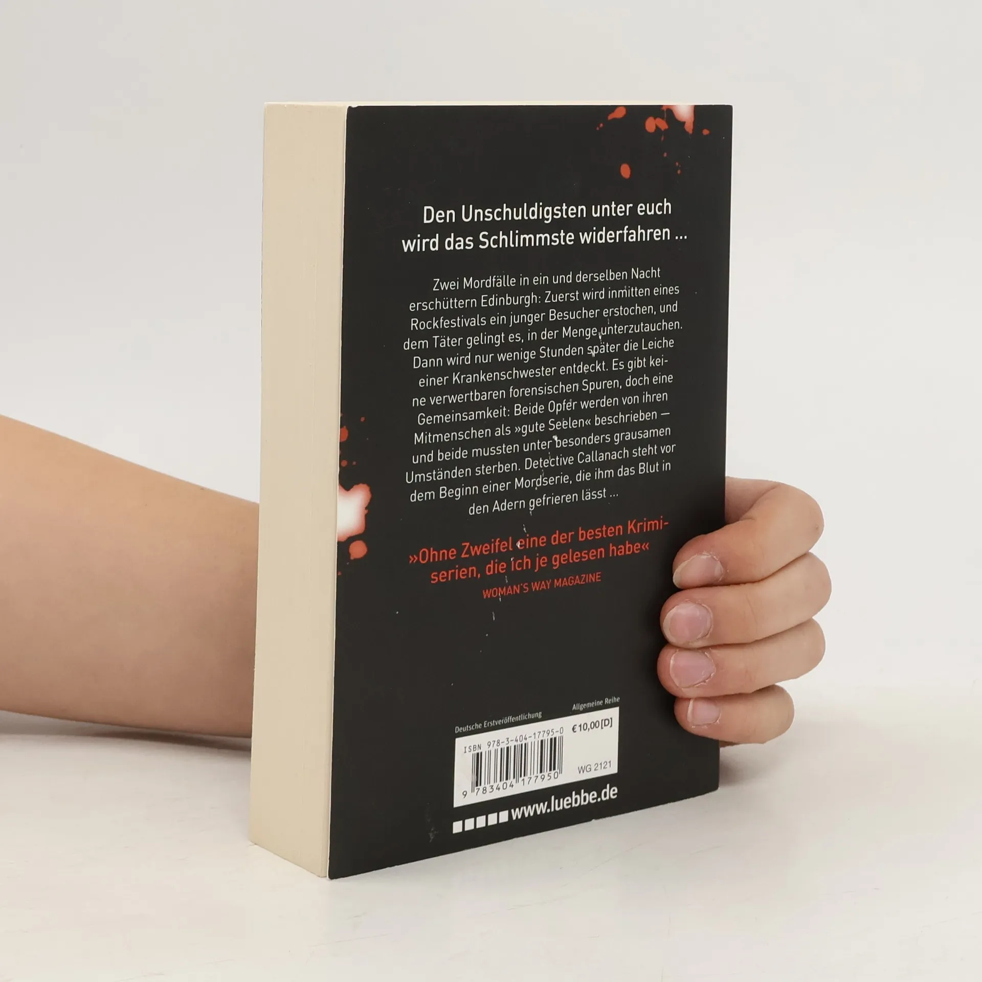 Zwei Mordfälle in ein und derselben Nacht erschüttern Edinburgh: Zuerst wird inmitten eines Rockfestivals ein junger Besucher erstochen, und dem Täter gelingt es, in der Menge unterzutauchen. Dann wird nur wenige Stunden später die Leiche einer Krankenschwester entdeckt. Es gibt keine verwertbaren forensischen Spuren, doch eine Gemeinsamkeit: Beide Opfer werden von ihren Mitmenschen als „gute Seelen“ beschrieben — und beide mussten unter besonders grausamen Umständen sterben. Detective Callanach steht vor dem Beginn einer Mordserie, die ihm das Blut in den Adern gefrieren lässt ... „Ohne Zweifel eine der besten Krimiserien, die ich je gelesen habe“ Woman's Way Magazine