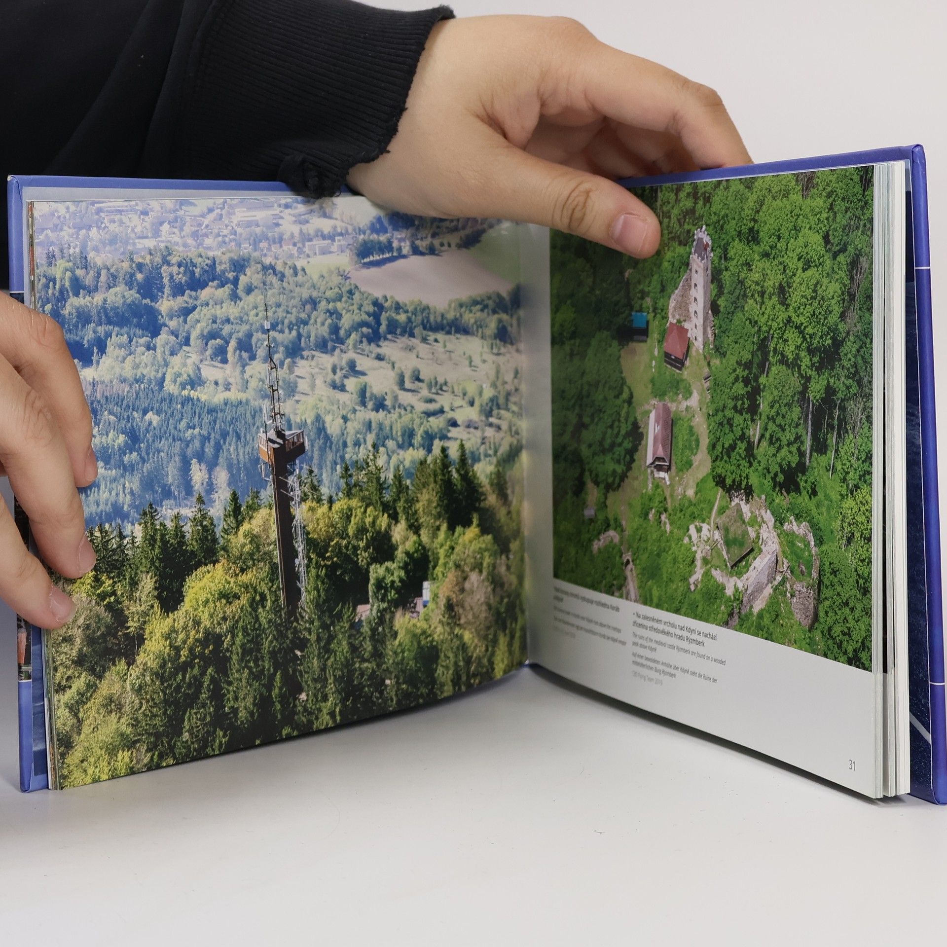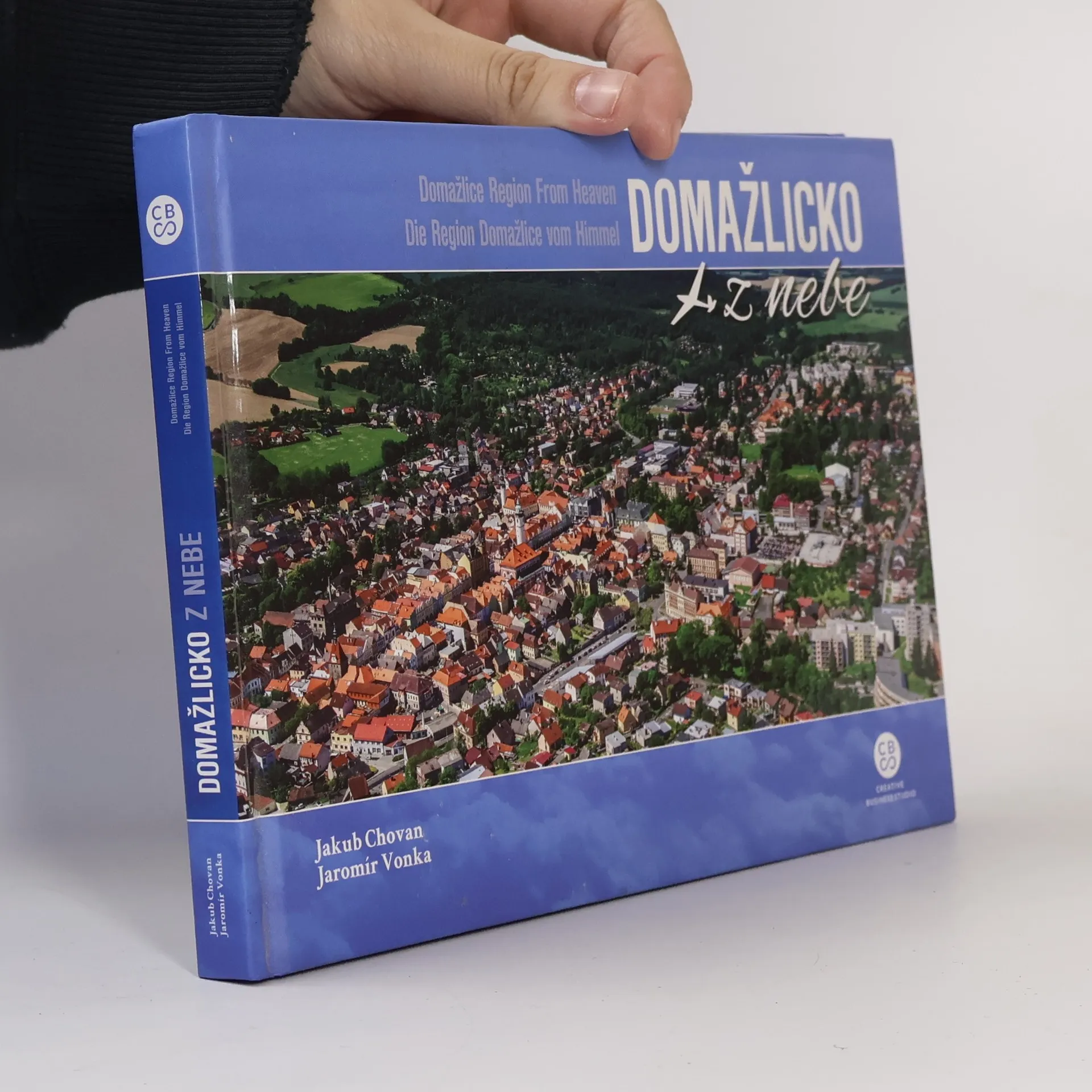 Domažlicko, region posetý pahorkatinami a hustými lesy se vyznačuje krásnou přírodou a lidovými chodskými tradicemi, které jsou velkým lákadlem pro turisty. Pohledům z letadla dominují malebné vesnice zasazené do nádherné přírody a města se zachovalými historickými centry. Srdcem regionu jsou Domažlice se dvěma vévodícími bílými věžemi a mohutnou bránou již se vstupuje do historického centra. V knize spatříte krásné záběry na Horšovský Týn s dominantním stejnojmenným zámkem a hradem s měšťanskými domy v pozadí, barokní kamenný most, který je nejznámější památku Bělé nad Radbuzou, Poběžovice se zámkem Nový Ronšperk, kde v mládí působil jako učitel hudby Bedřich Smetana, město Holýšov obklopené hustými lesy, zříceninu hradu Rýzmberk, Smolovský železniční most, který je vyhledávaný filmaři i turisty a mnoho dalších záběrů na krajinu ze všech ročních období.