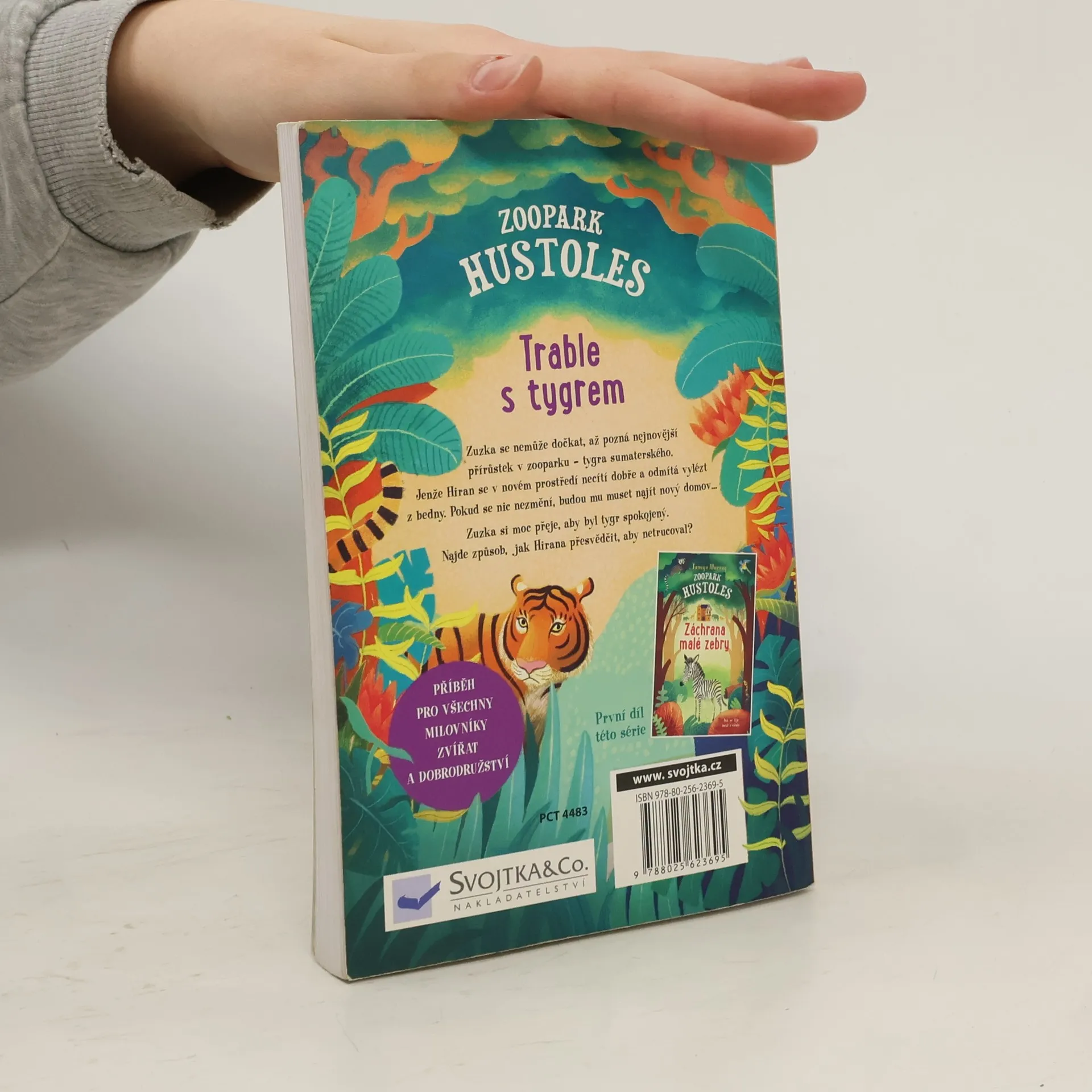Ve druhém díle trilogie Zoopark Hustoles zažívá Zuzka Lišková další dobrodružství. Už se důvěrně zná se zvířaty v zooparku a je hrdým členem týmu ošetřovatelů. Jejím úkolem je pomáhat tam, kde je to potřeba – u morčat, zeber, lemurů a mnoha dalších zvířat. Znovuotevřený zoopark je každý den plný návštěvníků, a tak se Liškovi rozhodnou rozšířit zvířecí obyvatele zooparku o párek ohrožených tygrů sumaterských. Jenže tygr Hiran převoz z berlínské zoo do Hustolesa snáší špatně a na svůj nový výběh si nechce zvyknout. Pokud se Hiran v novém prostředí neotrká, budou ho muset převézt jinam. A v takovém případě by si nemohli nechat ani tygřici Koko. Podaří se ošetřovatelům vylákat Hirana z přepravní bedny a rozptýlit jeho pozornost? A zafunguje Zuzčin nápad? Knížky o Hustolese jsou plné příběhů o zvířatech žijících v zooparku a také o lidech, kteří se o ně starají. Vedle poutavého čtení se toho mladí čtenáři dozví spoustu o zebrách, tygrech, lvech, gazelách, morčatech, surikatách a dalších zvířecích obyvatelích zooparku Hustoles.