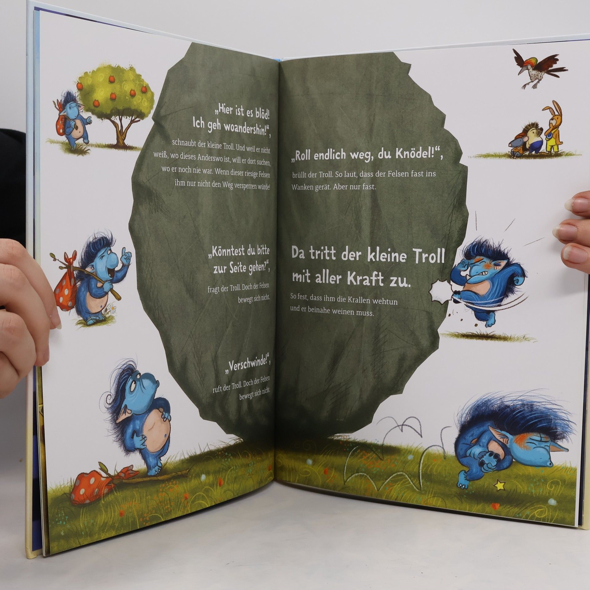 Es könnte alles so schön sein! Wäre da nicht die blöde Hütte, die immer wieder zusammenkracht, oder der dumme Baum, von dem einfach kein Apfel herunterfallen will … Den Frust und die Wut, wenn Dinge nicht so laufen, wie man es sich wünscht, kennt jeder. Auch der Grolltroll. Was aber tun, wenn die ganz große Wut kommt und uns einfach überrollt? Das Bilderbuch von aprilkind, Barbara van den Speulhof und Stephan Pricken hilft, ihr spielerisch ein Ende zu setzen.