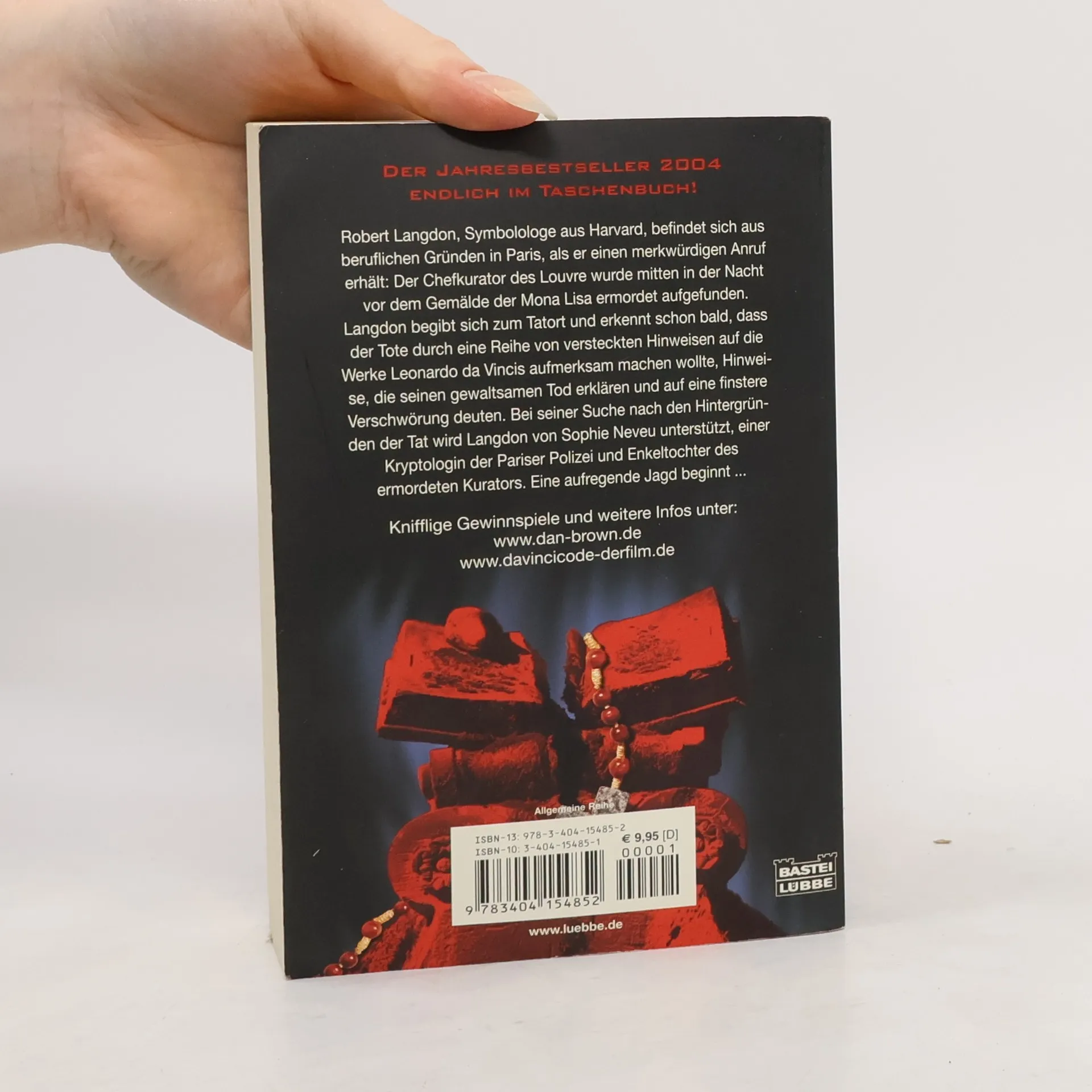 Auf der Suche nach dem Da Vinci Code ... Robert Langdon, Symbolologe aus Harvard, befindet sich aus beruflichen Gründen in Paris, als er einen merkwürdigen Anruf erhält: Der Chefkurator des Louvre wurde mitten in der Nacht vor dem Gemälde der Mona Lisa ermordet aufgefunden. Langdon begibt sich zum Tatort und erkennt schon bald, dass der Tote durch eine Reihe von versteckten Hinweisen auf die Werke Leonardo da Vincis aufmerksam machen wollte - Hinweise, die seinen gewaltsamen Tod erklären und auf eine finstere Verschwörung deuten. Bei seiner Suche nach den Hintergründen der Tat wird Robert Langdon von Sophie Neveu unterstützt, einer Kryptologin der Pariser Polizei und Enkeltochter des ermordeten Kurators. Eine aufregende Jagd beginnt ... Mit dem Thriller Sakrileg schrieb Dan Brown einen Mega-Bestseller, der mit Tom Hanks in der Hauptrolle ein großer Kinoerfolg wurde.