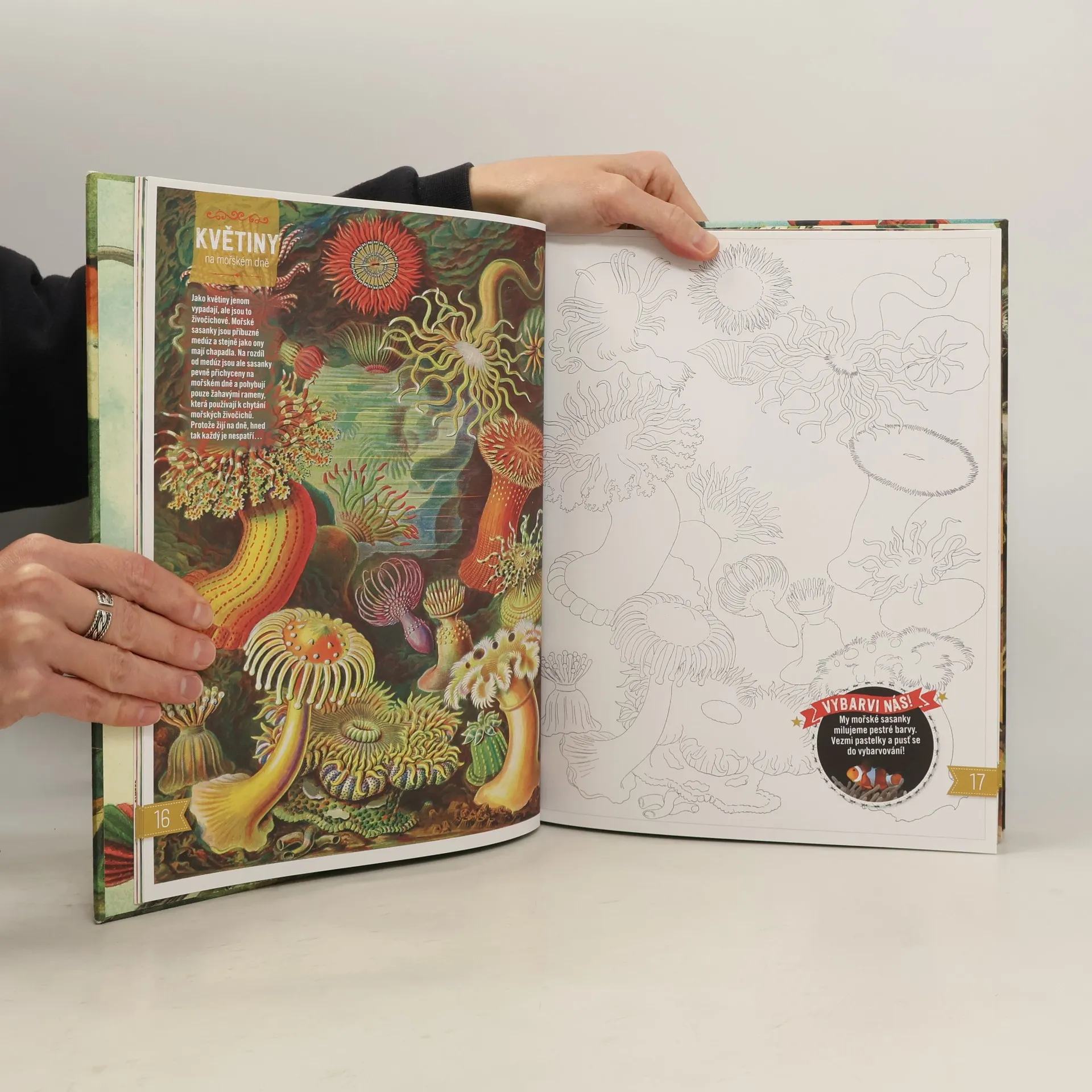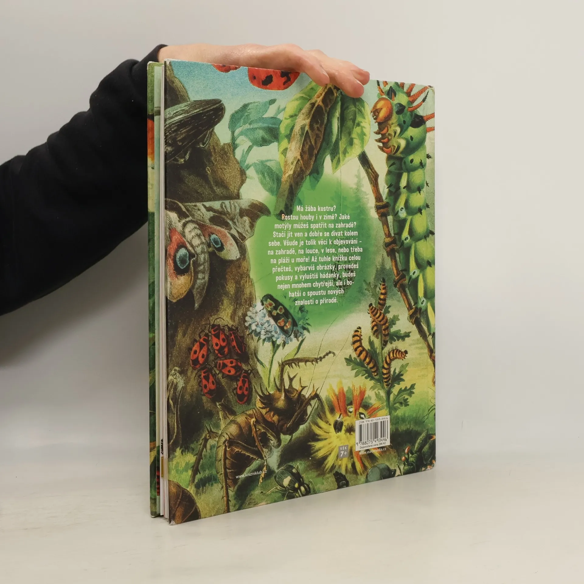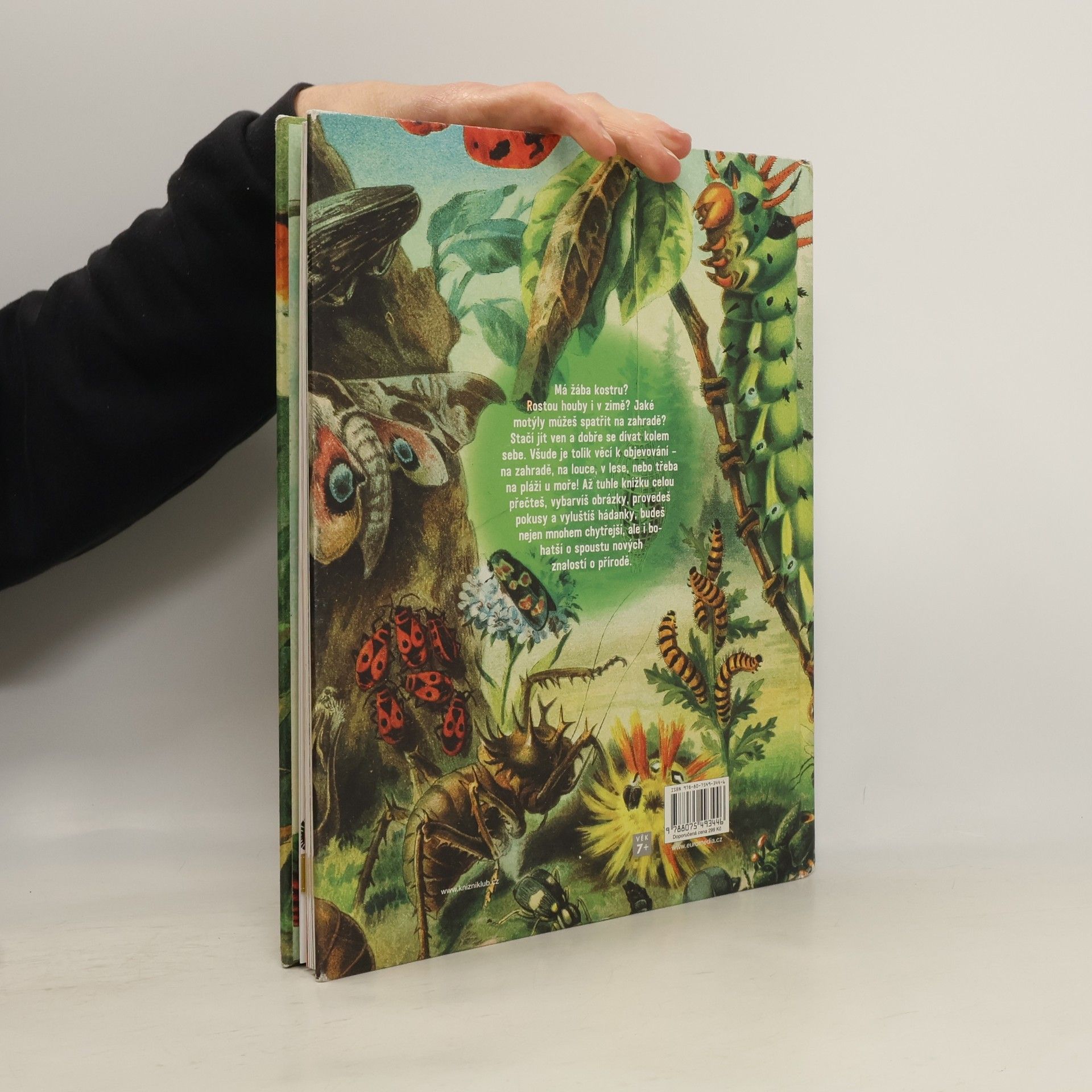 Nechejte děti dívat se na přírodu jinýma očima! Každý z nás si pamatuje, s jakým okouzlením sbíral mušle na pláži, žasl nad barvami podzimního listí, obdivoval let motýla a radoval se z objevu záhadné houby. Ale jaký živočich mušli vytvořil a žil v ní? Proč se listí na podzim zbarvuje, jak se zrodil motýl a jaká tajemství ukrývá svět hub? V této ilustrované knize pro mladší školáky, pojaté spíše jako kreativní pracovní sešit, jsou odpovědi podány hravě a nápaditě. Čtenář je získává aktivně – vybarvováním, luštěním hádanek a plněním zábavných úkolů. Kniha se vymyká běžným encyklopediím o přírodě – je originální obsahem, pojetím i výtvarnou podobou.