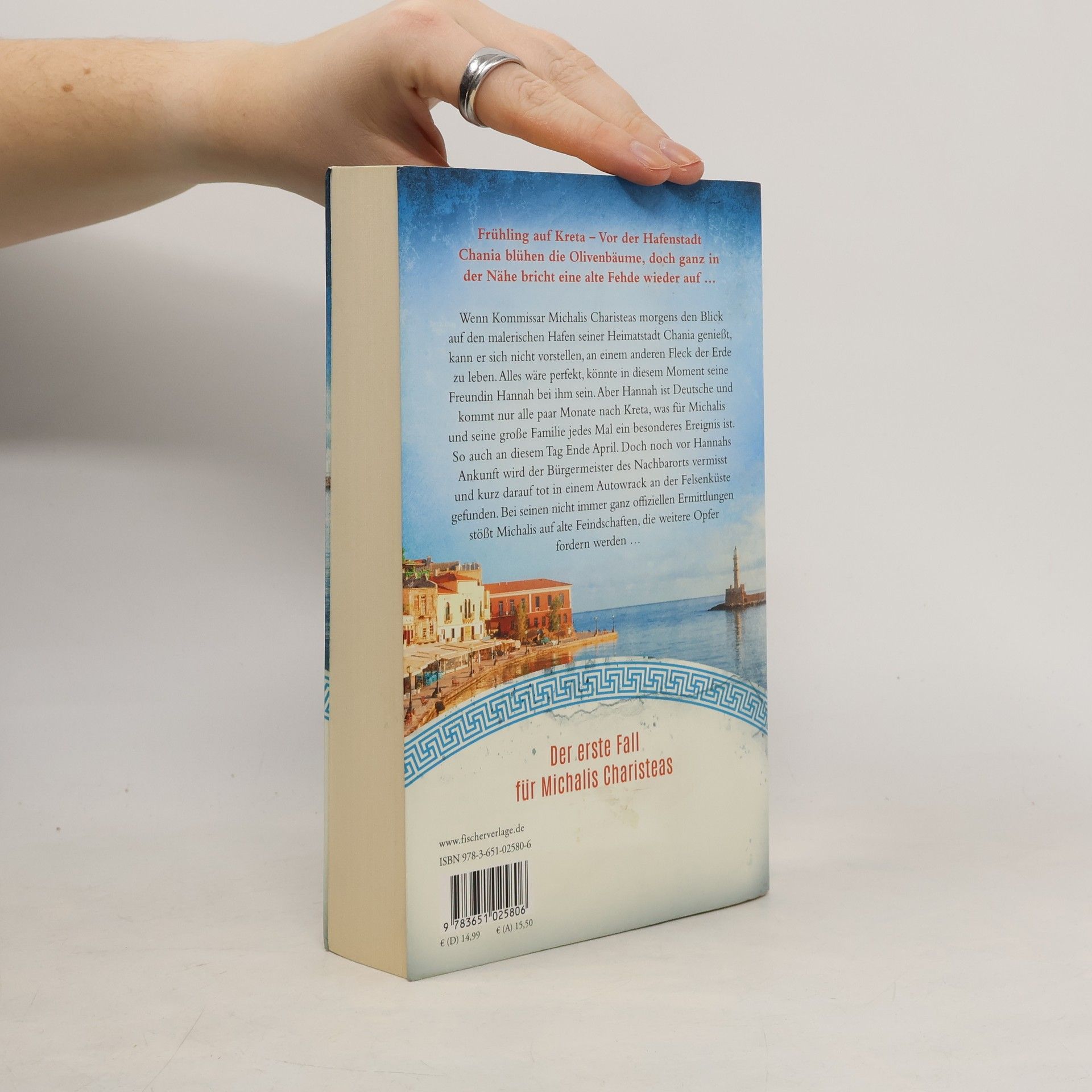 Frühling auf Kreta – Vor der Hafenstadt Chania blühen die Olivenbäume, doch ganz in der Nähe bricht eine alte Fehde wieder auf … Wenn Kommissar Michalis Charisteas morgens vor der Arbeit seinen ersten Ellinikos trinkt und dabei den Blick auf den malerischen venezianischen Hafen seiner Heimatstadt Chania genießt, kann er sich nicht vorstellen, an einem anderen Fleck der Erde zu leben. Die Touristen schlafen noch, von den Bergen weht der Duft von Thymian, Oleander und den blühenden Olivenbäumen herüber und vom Meer der Geruch von Salz und Muscheln. Alles wäre perfekt, könnte in diesem Moment seine Freundin Hannah bei ihm sein. Aber Hannah ist Deutsche und kommt nur alle paar Monate nach Kreta, was für Michalis und seine große Familie jedes Mal ein besonderes Ereignis ist und alle in helle Vorfreude versetzt. So auch an diesem Tag Ende April. Doch noch bevor Michalis Hannah am Nachmittag am Flughafen in die Arme schließen kann, steckt er mitten in einem neuen Fall. Der Bürgermeister des Nachbarorts wird vermisst und kurz darauf tot in einem Autowrack an der Felsenküste gefunden. Ein Unfall, wie die örtliche Polizei schnell feststellt. Doch im Gegensatz zu seinen Kollegen gibt sich Michalis nicht mit einfachen Erklärungen zufrieden. Bei seinen nicht immer ganz offiziellen Ermittlungen stößt er auf alte Feindschaften, die weitere Opfer fordern werden … Der erste Fall für Kommissar Michalis Charisteas