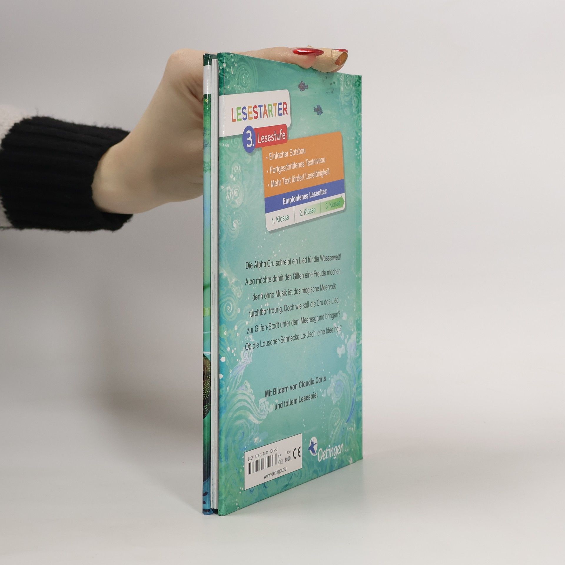Ein neues Meermädchen-Abenteuer für Leseanfänger Die Alpha Cru schreibt ein Lied für die Wasserwelt! Alea möchte damit den Gilfen eine Freude machen, denn ohne Musik ist das magische Meervolk furchtbar traurig. Doch wie soll die Cru das Lied zur Gilfen-Stadt unter dem Meeresgrund bringen? Ob die Lauscher-Schnecke La-Uschi eine Idee hat? Erstlesebuch ab 8 Jahren über Mut, Freundschaft und Umweltschutz. Gut geeignet für fortgeschrittene Leseanfänger in der 3. Klasse. Die perfekte Vorbereitung auf die „Alea Aquarius“-Kinderbuchreihe ab 10 Jahren. Mit Leserätseln zum Thema „Umwelt“. Mit vielen bunten Bildern von Claudia Carls („Seawalkers“). Das zeichnet die Lesestarter der 3. Lesestufe aus: Einfacher Satzbau Fortgeschrittenes Textniveau Höherer Textanteil fördert die Lesefähigkeit Gelistet bei Antolin.