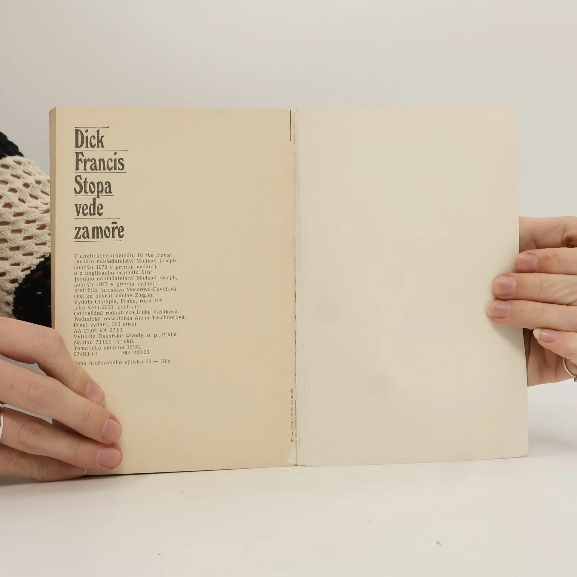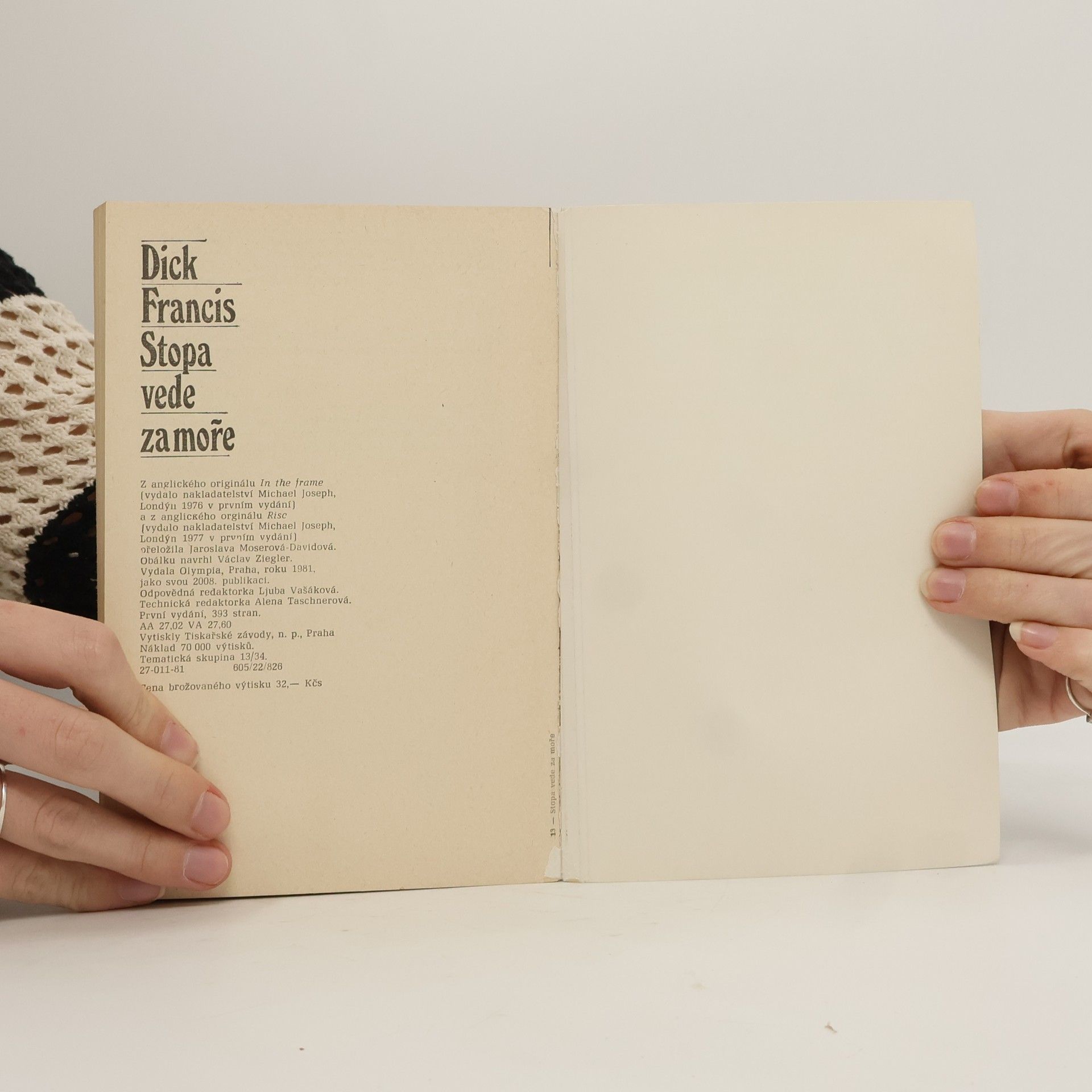 Společné vydání Motiv koní + Risk V prvním příběhu Motiv koní se Charles Todd, malíř portrétů dostihových koní, utká se skupinou padělatelů významných malířských děl s motivem koní. Hrdinou druhého příběhu Risk je účetní a spolumajitel revizní kanceláře Roland Britten, amatérský jezdec, který odhalil finanční a daňové machinace. 27-011-81