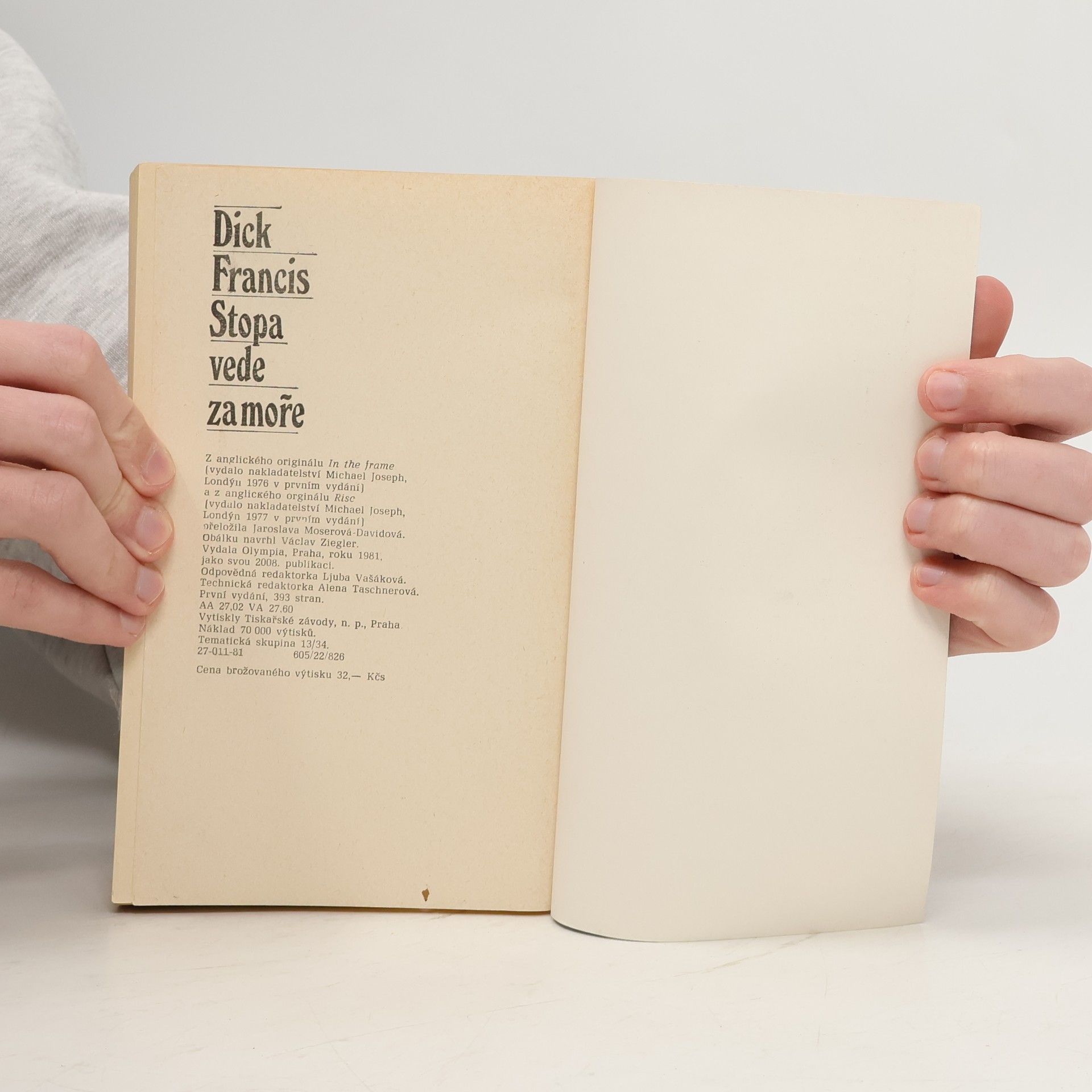 Společné vydání Motiv koní + Risk V prvním příběhu Motiv koní se Charles Todd, malíř portrétů dostihových koní, utká se skupinou padělatelů významných malířských děl s motivem koní. Hrdinou druhého příběhu Risk je účetní a spolumajitel revizní kanceláře Roland Britten, amatérský jezdec, který odhalil finanční a daňové machinace. 27-011-81