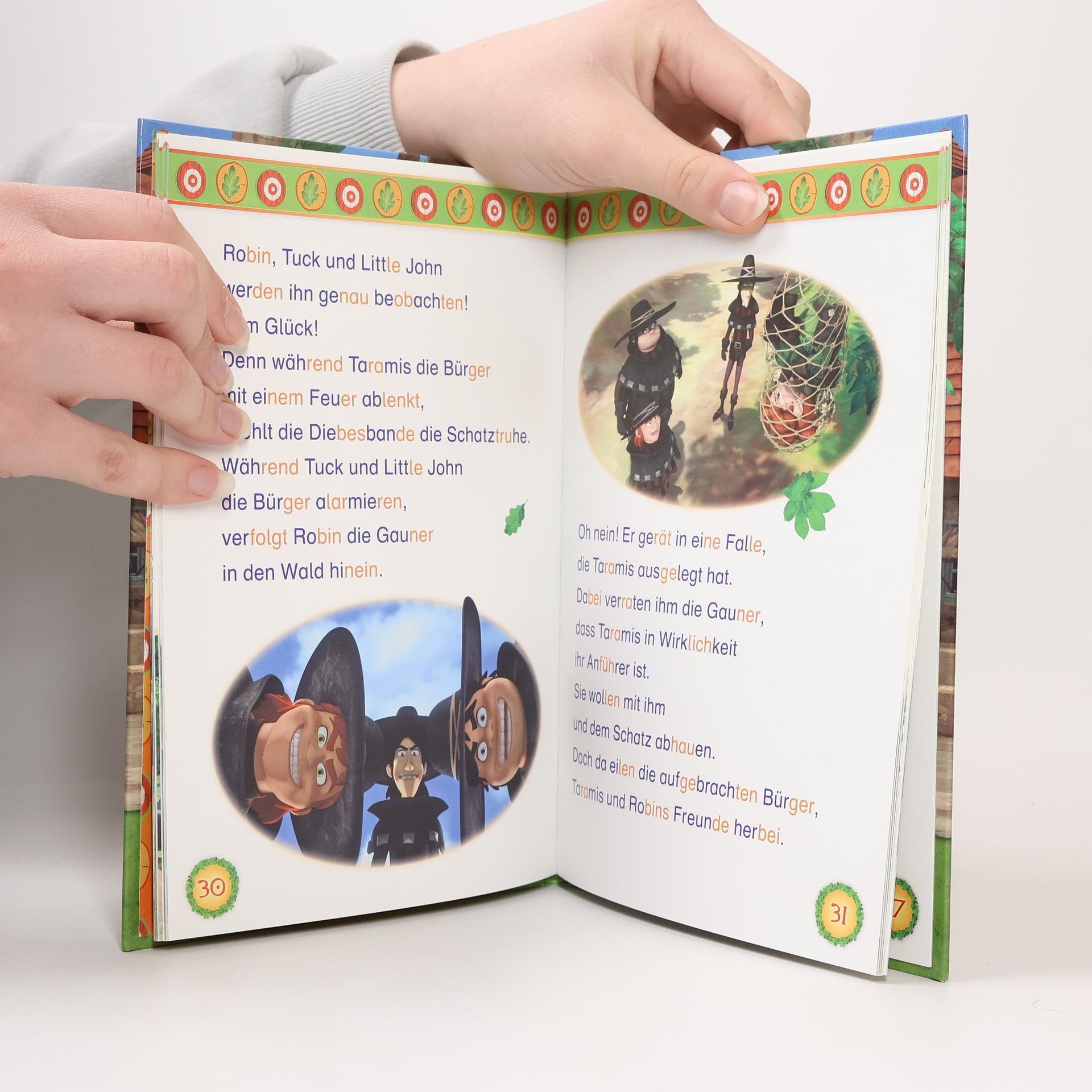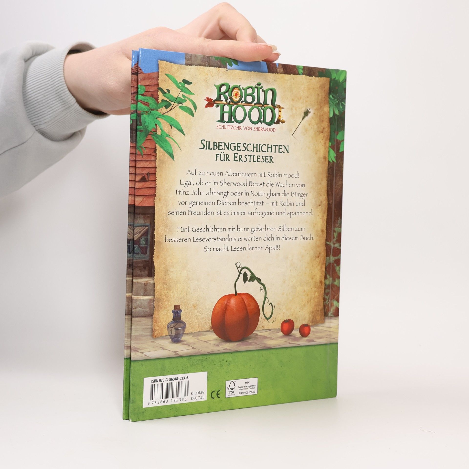 Die Geschichten von Robin Hood begeistert auch die jüngsten Leser. Kurze Textabschnitte mit große Schrift und die eingefärbten Silben erleichtern Leseanfängern das Lesen und motivieren zum Selberlesen. So macht Lesen lernen Spaß! Wer hilft den Armen und trickst den fiesen Prinz John aus? Natürlich Robin Hood, das Schlitzohr von Sherwood! Zusammen mit seinen Freunden sorgt er dafür, dass die Gerechtigkeit nicht zu kurz kommt.
