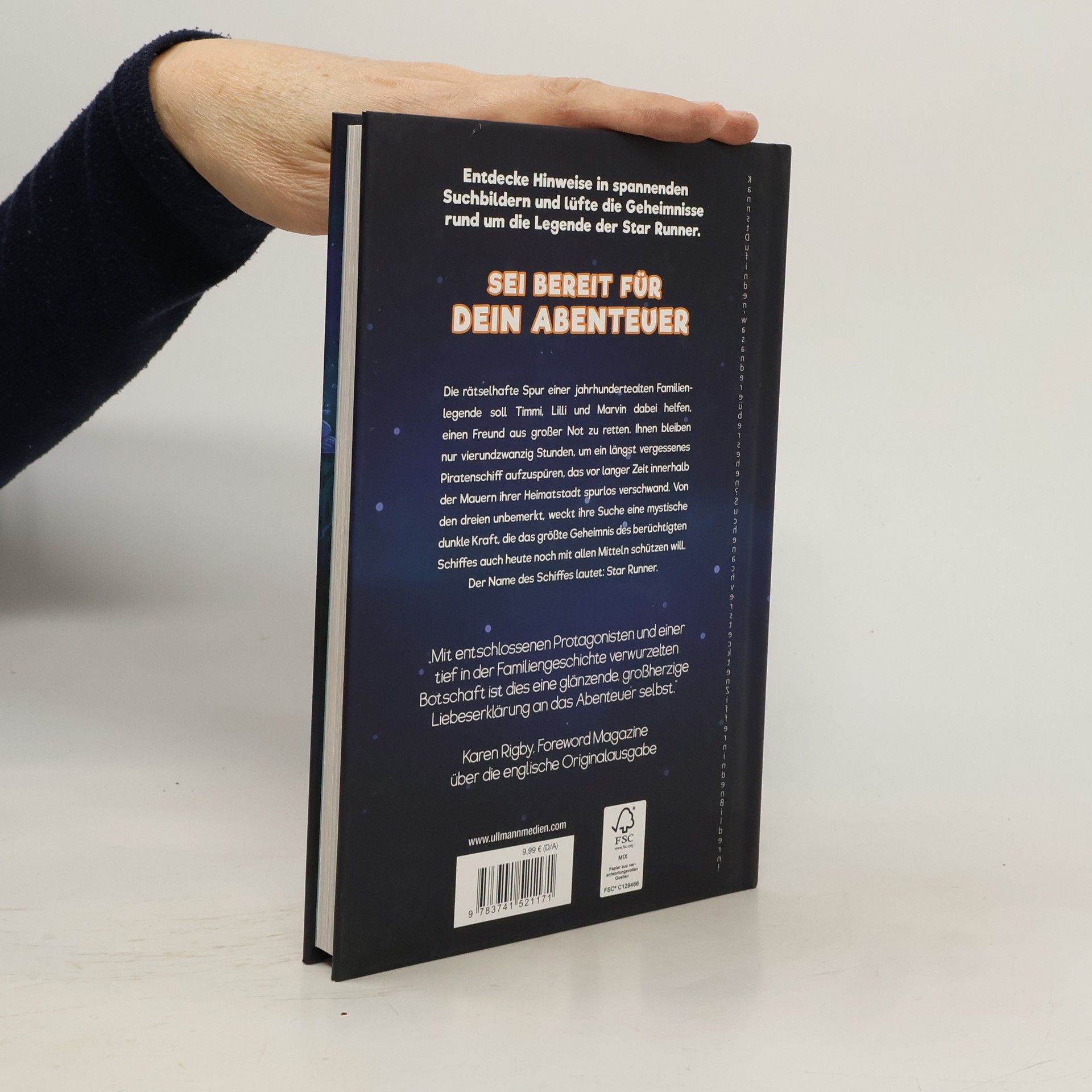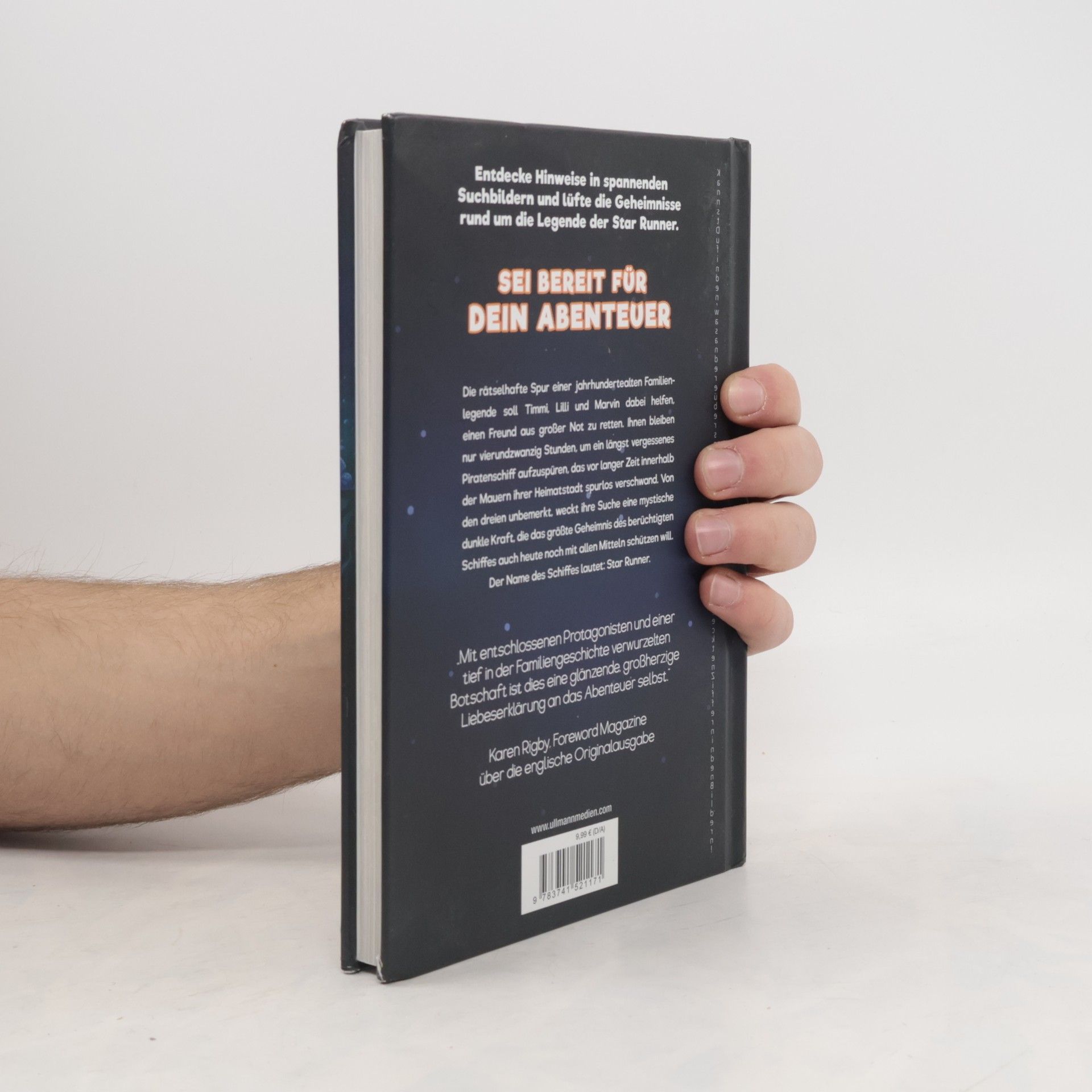 „Eine glänzende, großherzige Liebeserklärung an das Abenteuer selbst.“ - FOREWORD MAGAZINE über die englische Originalausgabe. Spürnasen und Abenteurer: Erkundet spannende Suchbilder und lüftet alle Geheimnisse! Die rätselhafte Spur einer jahrhundertealten Familienlegende führt Timmi, Lilli und Marvin auf die Mission, einen Freund aus großer Not zu retten. Sie haben nur vierundzwanzig Stunden, um ein längst vergessenes Piratenschiff zu finden, das vor langer Zeit in ihrer Heimatstadt verschwand. Während ihrer Suche weckt die mysteriöse Dunkelheit eine Kraft, die das größte Geheimnis des berüchtigten Schiffs, der Star Runner, mit allen Mitteln schützen will. „Die Legende der Star Runner“ besteht aus 31 abgeschlossenen Kapiteln, jedes mit einer schönen Farbillustration, in der sich ein Rätsel verbirgt. Diese Geschichte ist für junge und alte Entdecker geeignet, wobei Kinder unter 8 Jahren möglicherweise Unterstützung bei einigen Rätseln benötigen. Die wunderschöne Optik der Farbillustrationen verbindet die ansprechende Grafik einer Graphic Novel mit der textbasierten Kraft des Geschichtenerzählens und bietet Lesern das Beste aus beiden Welten. Zusätzlich enthält das Buch ein verborgenes Extra-Rätsel, das sich über alle 31 Illustrationen erstreckt, aber nicht mit der Hauptgeschichte in Verbindung steht.