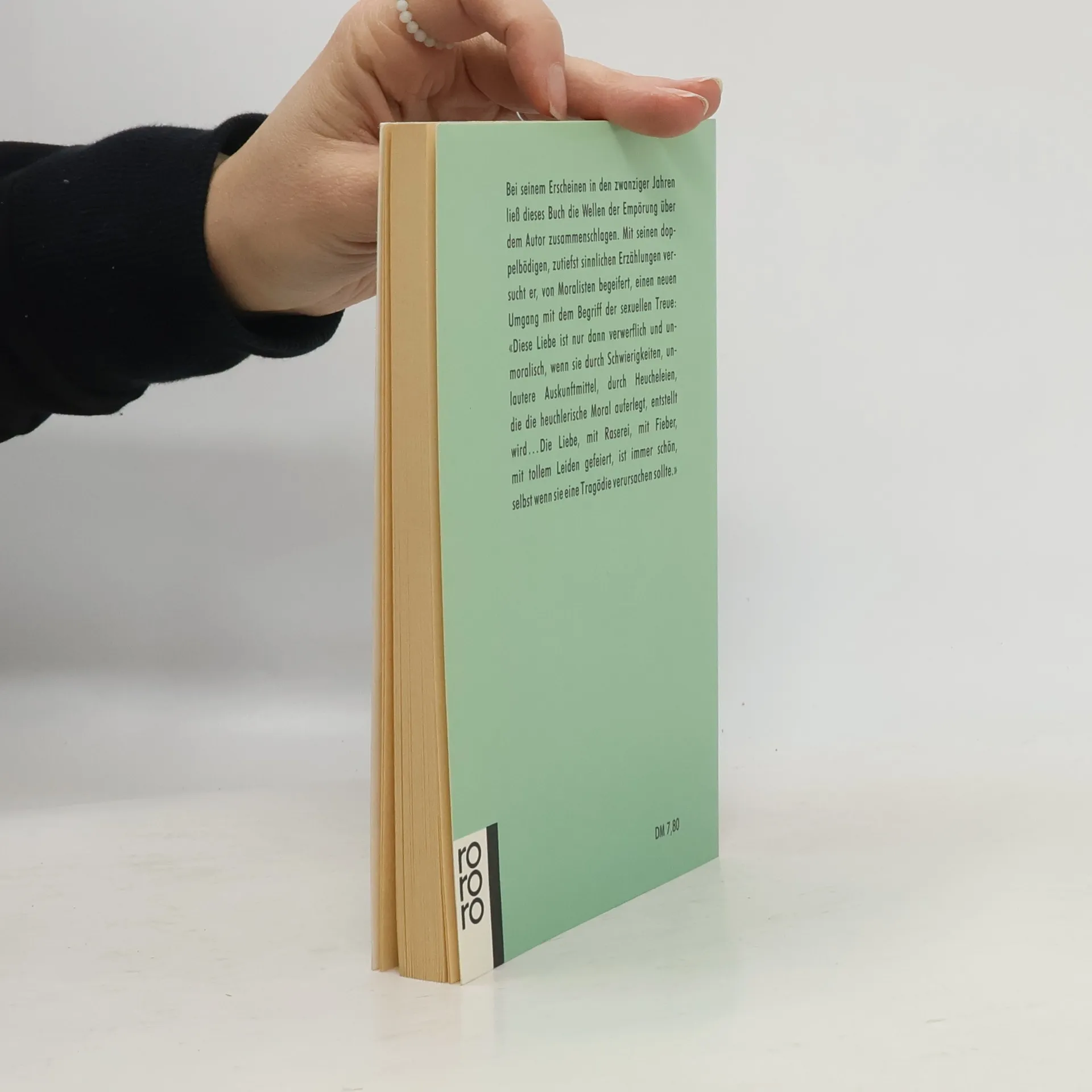 Bei seinem Erscheinen in den zwanziger Jahren ließ dieses Buch die Wellen der Empörung über dem Autor zusammenschlagen. Mit seinen doppelbödigen, zutiefst sinnlichen Erzählungen versucht Pitigrilli, von Moralisten begeifert, einen neuen Umgang mit dem Begriff der sexuellen «Diese Liebe ist nur dann verwerflich und unmoralisch, wenn sie durch Schwierigkeiten, unlautere Auskunftmittel, durch Heucheleien, die die heuchlerische Moral auferlegt, entstellt wird … Die Liebe, mit Raserei, mit Fieber, mit tollem Leiden gefeiert, ist immer schön, selbst wenn sie eine Tragödie verursachen sollte.»