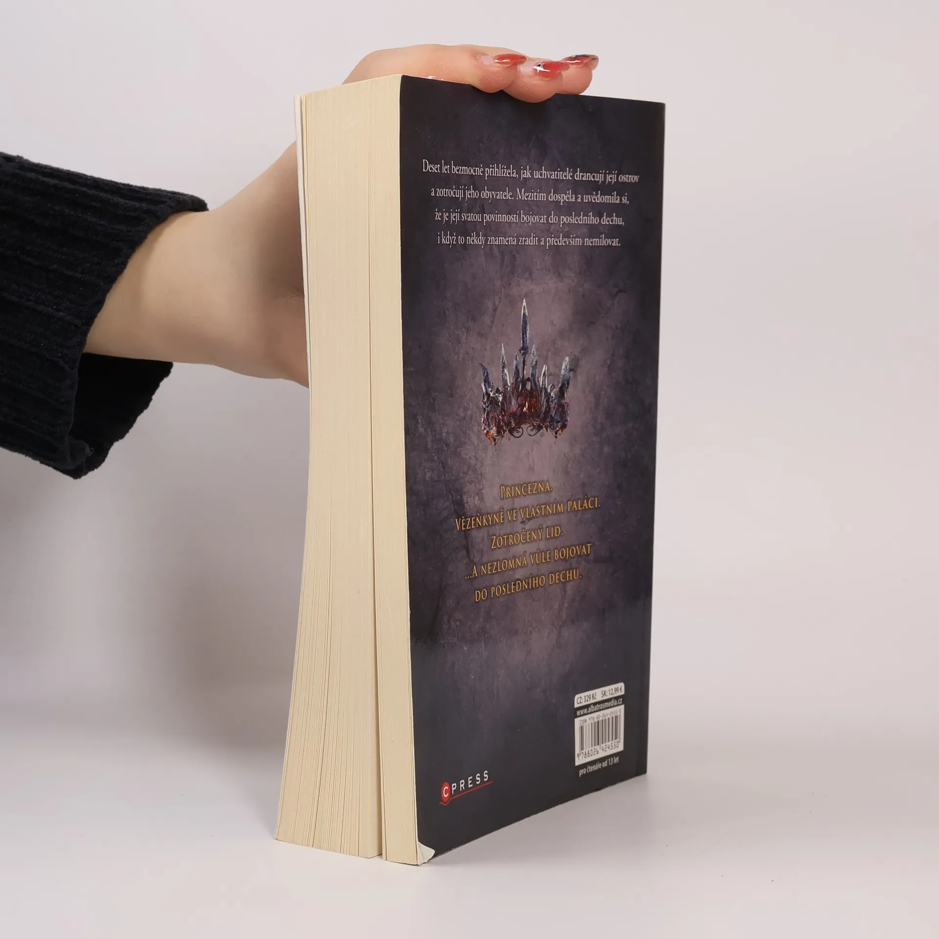 Princezna. Vězenkyně ve vlastním paláci. Zotročený lid. A nezlomná vůle bojovat do posledního dechu.“ Deset let bezmocně přihlížela, jak uchvatitelé drancují její ostrov a zotročují jeho obyvatele. Mezitím dospěla a uvědomila si, že je její svatou povinností bojovat do posledního dechu, i když to někdy znamená zradit a především nemilovat.