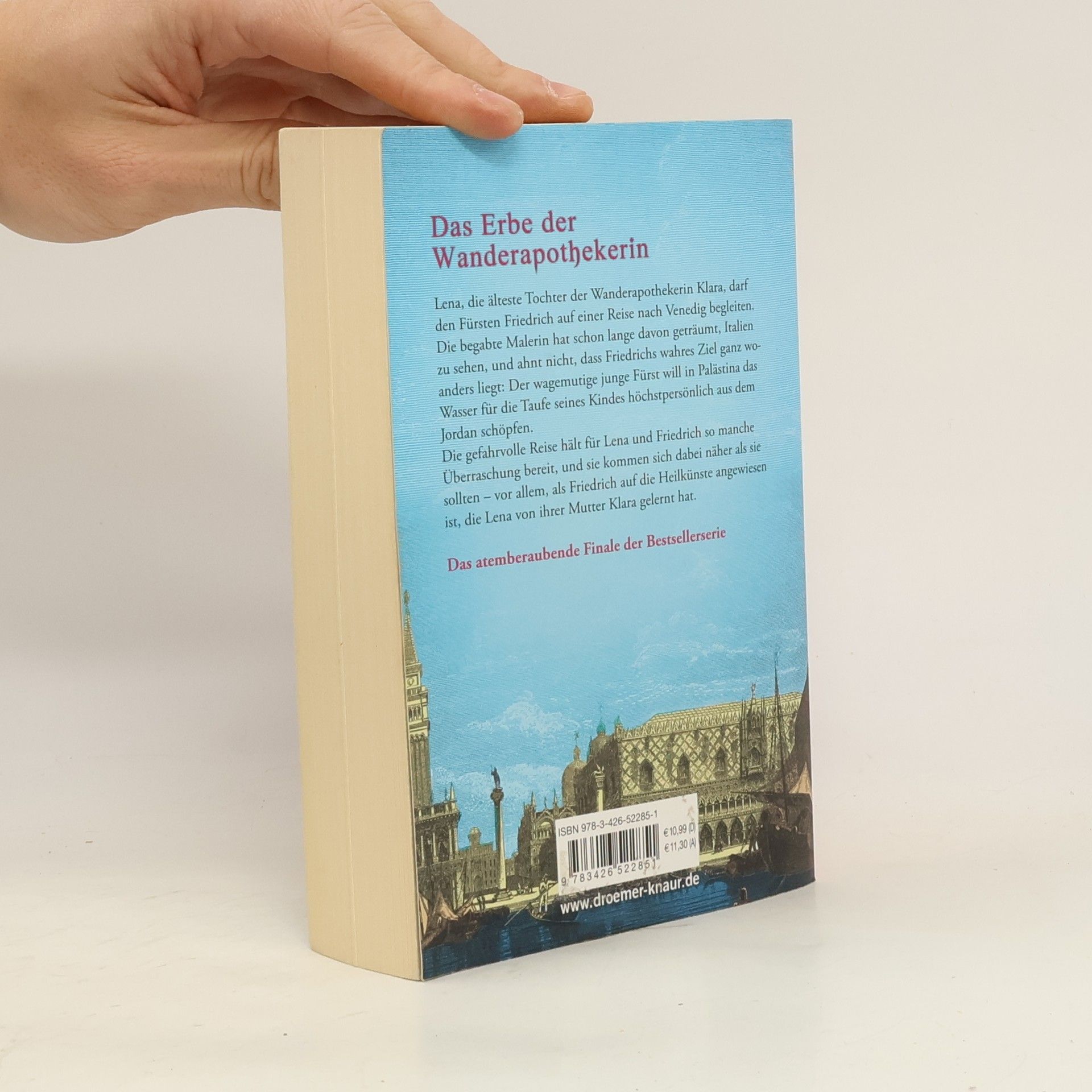 Lena, die älteste Tochter der Wanderapothekerin Klara, darf den Fürsten Friedrich auf einer Reise nach Venedig begleiten. Die begabte Malerin hat schon lange davon geträumt, Italien zu sehen, und ahnt nicht, dass Friedrichs wahres Ziel ganz woanders liegt: Der wagemutige junge Fürst will in Palästina das Wasser für die Taufe seines Kindes höchstpersönlich aus dem Jordan schöpfen. Die gefahrvolle Reise hält für Lena und Friedrich so manche Überraschung bereit, und sie kommen sich dabei näher als sie sollten - vor allem, als Friedrich auf die Heilkünste angewiesen ist, die Lena von ihrer Mutter Klara gelernt hat.