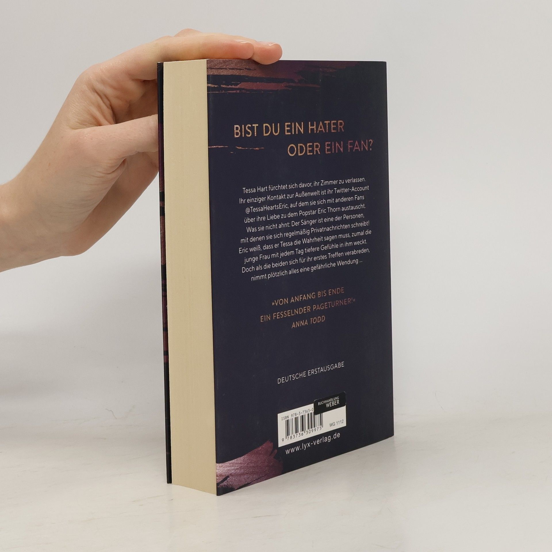 Bist du ein Hater oder ein Fan? Tessa Hart fürchtet sich davor, ihr Zimmer zu verlassen. Ihr einziger Kontakt zur Außenwelt ist ihr Twitter-Account @TessaHeartsEric, auf dem sie sich mit anderen Fans über ihre Liebe zu dem Popstar Eric Thorn austauscht. Was sie nicht ahnt: Der Sänger ist eine der Personen, mit denen sie sich regelmäßig Privatnachrichten schreibt! Eric weiß, dass er Tessa die Wahrheit sagen muss, zumal die junge Frau mit jedem Tag tiefere Gefühle in ihm weckt. Doch als die beiden sich für ihr erstes Treffen verabreden, nimmt plötzlich alles eine gefährliche Wendung ... „Von Anfang bis Ende ein fesselnder Pageturner!“ ANNA TODD Band 2 der Reihe (TELL ME NO LIES) erscheint am 29. November 2019.