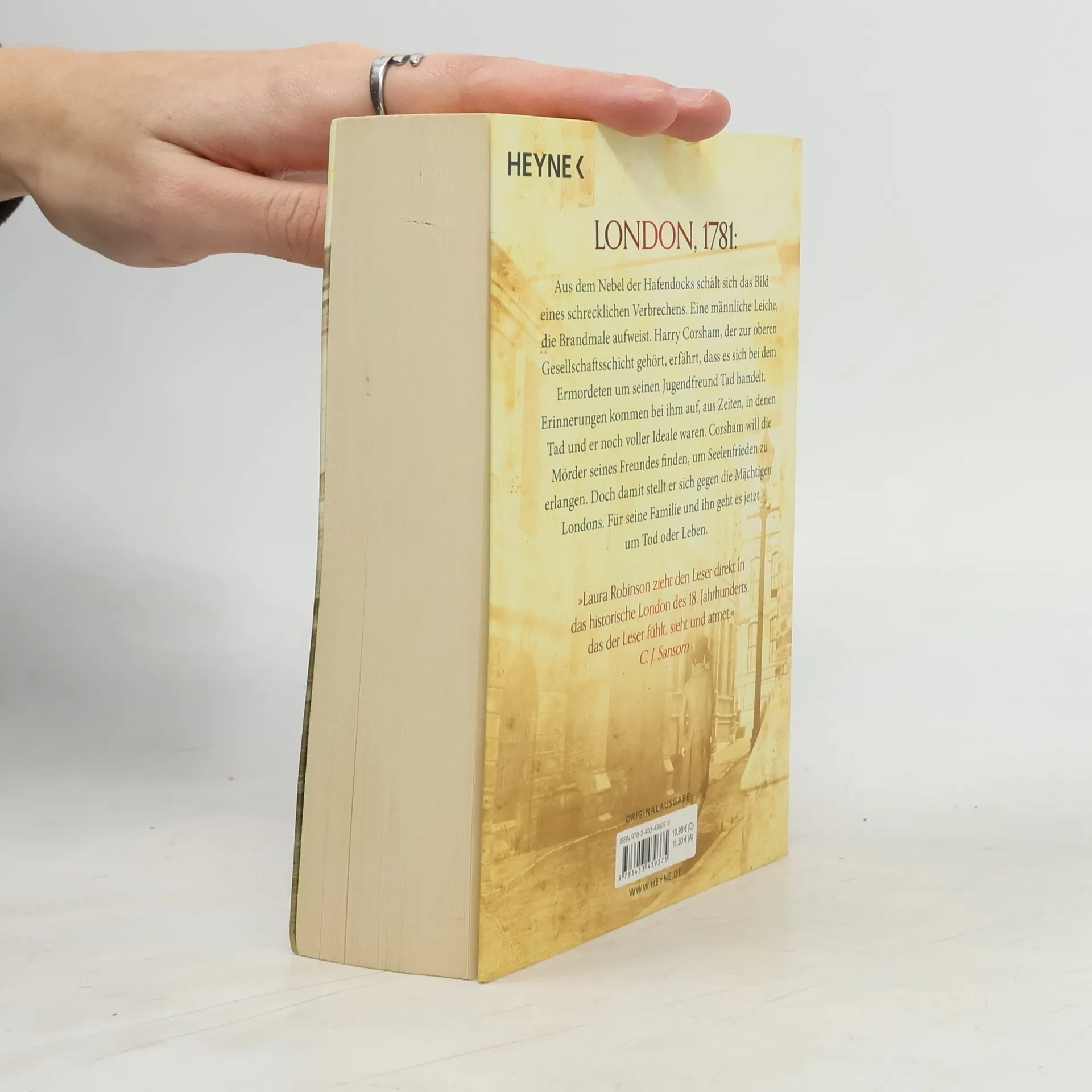 London, 1781: Aus dem Nebel der Hafendocks schält sich das Bild eines schrecklichen Verbrechens. Eine männliche Leiche, die Brandmale aufweist. Harry Corsham, der zur oberen Gesellschaftsschicht gehört, erfährt, dass es sich bei dem Ermordeten um seinen Jugendfreund Tad handelt. Erinnerungen kommen bei ihm auf, aus Zeiten, in denen Tad und er noch voller Ideale waren. Corsham will die Mörder seines Freundes finden, um Seelenfrieden zu erlangen. Doch damit stellt er sich gegen die Mächtigen Londons. Für seine Familie und ihn geht es jetzt um Tod oder Leben.