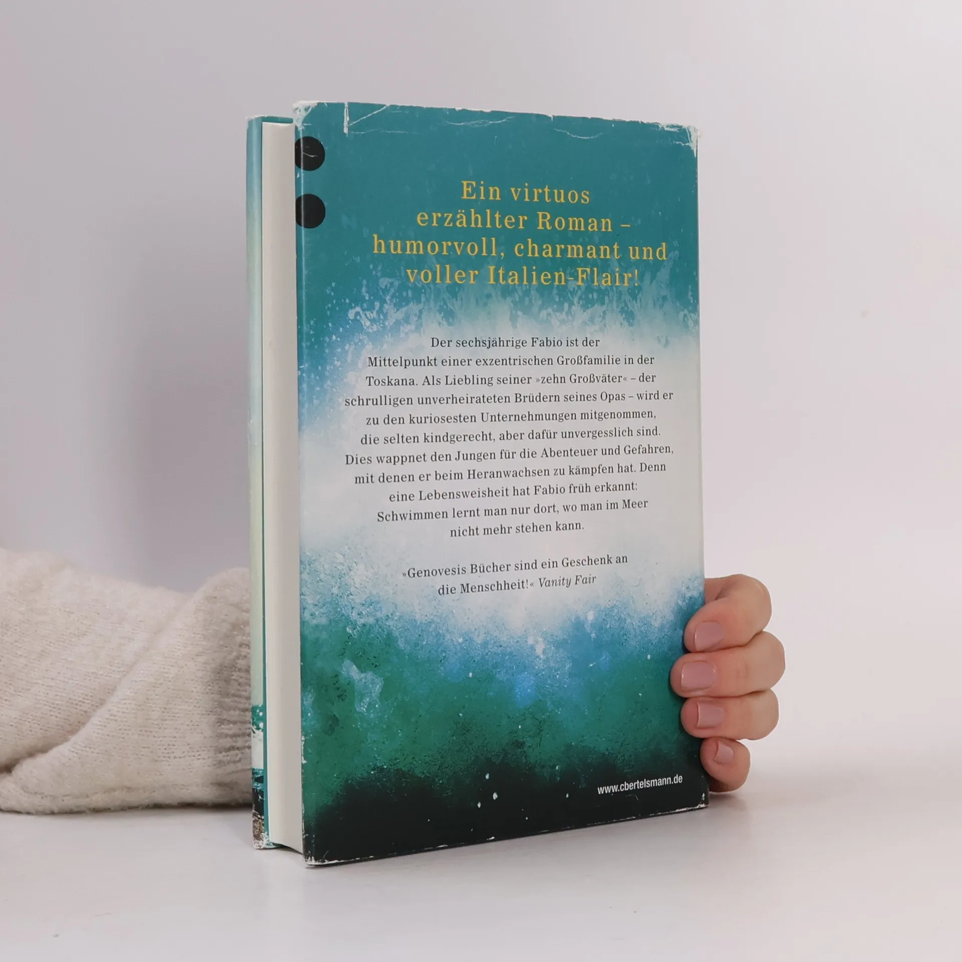 »Genovesis Bücher sind ein Geschenk an die Menschheit!« Vanity Fair Der 6jährige Fabio hat es nicht leicht: Seine „10 Großväter“, die vielen unverheirateten Brüder seines Opas, reißen sich nur darum, ihn zu den kuriosesten Unternehmungen mitzunehmen. Erst in der Schule merkt Fabio, dass man als Kind auch mit Gleichaltrige spielen kann – doch da ist seine Rolle als Außenseiter schon vorprogrammiert. Die Kindheit am (und über weite Teile auch im) Meer ist für den Jungen ein ebenso großes Abenteuer wie die Entdeckung des Lesens und Schreibens. Und als sein Vater nach einem tragischen Unfall regungslos im Krankenhaus liegt, sind es die selbst verfassten Texte des inzwischen 12jährigen, die bei seinem Vater eine Reaktion auslösen. »Wo man im Meer nicht mehr stehen kann« ist eine virtuos erzählte Familiengeschichte voller liebenswert-schrulliger Figuren und sommerlicher Italien-Atmosphäre. Mit seinen autobiografischen Zügen ist der Roman gleichzeitig eine Liebeserklärung an die (wortwörtlich lebensrettende) Kraft des Schreibens und der Fantasie.