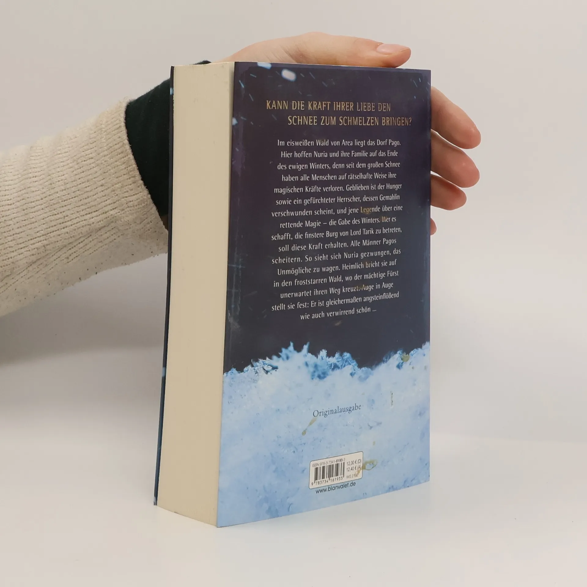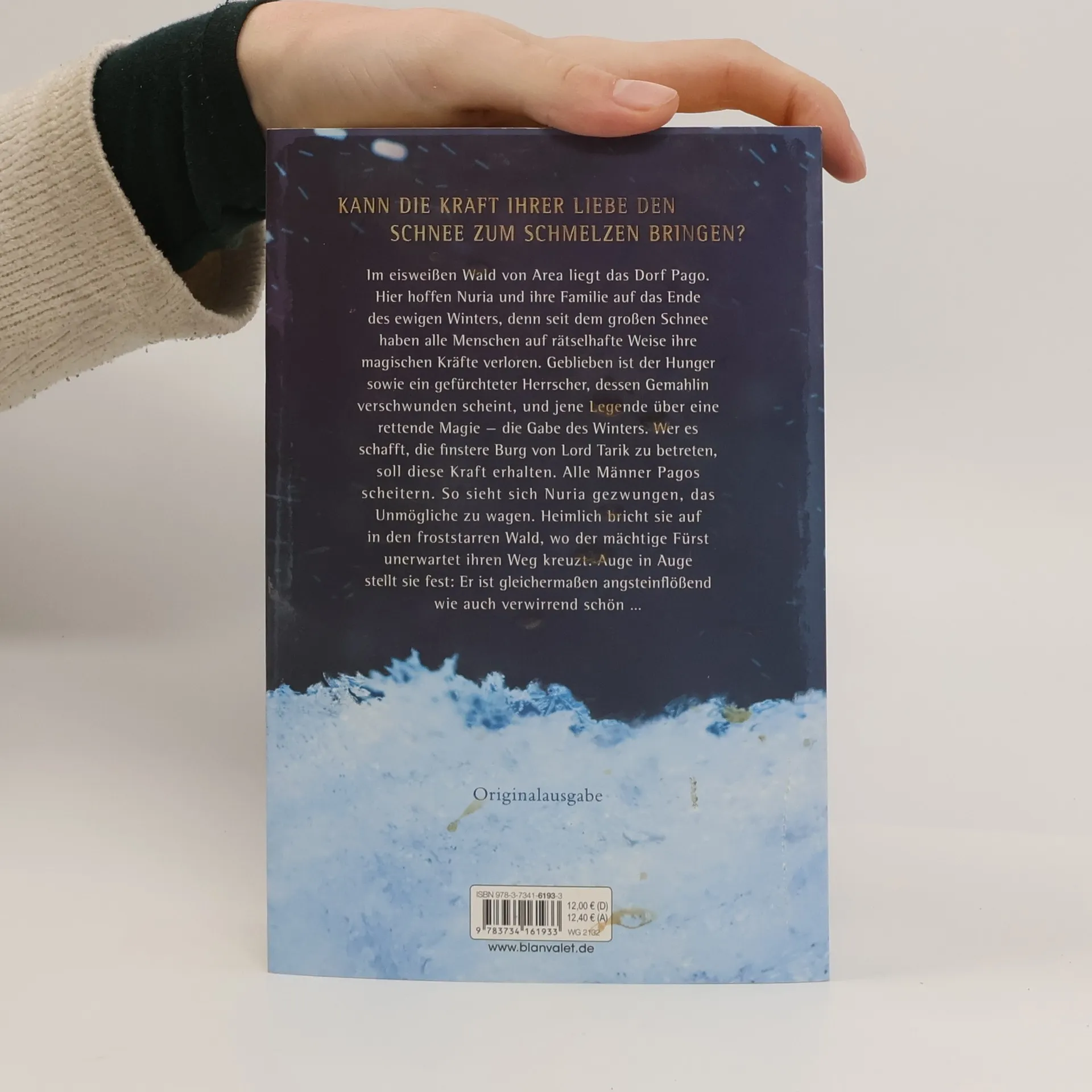 Kann die Kraft ihrer Liebe den Schnee zum Schmelzen bringen? Im eisweißen Wald von Area liegt das Dorf Pago. Hier hoffen Nuria und ihre Familie auf das Ende des ewigen Winters, denn seit dem großen Schnee haben alle Menschen auf rätselhafte Weise ihre magischen Kräfte verloren. Geblieben ist der Hunger, sowie ein gefürchteter Herrscher, dessen Gemahlin verschwunden scheint, und jene Legende über eine rettende Magie - die Gabe des Winters. Wer es schafft, die finstere Burg von Lord Tarik zu betreten, soll diese Kraft erhalten. Alle Männer Pagos scheitern. So sieht sich Nuria gezwungen, das Unmögliche zu wagen. Heimlich bricht sie auf in den froststarren Wald, wo der mächtige Fürst unerwartet ihren Weg kreuzt. Auge in Auge stellt sie fest: Er ist gleichermaßen angsteinflößend wie auch verwirrend schön …