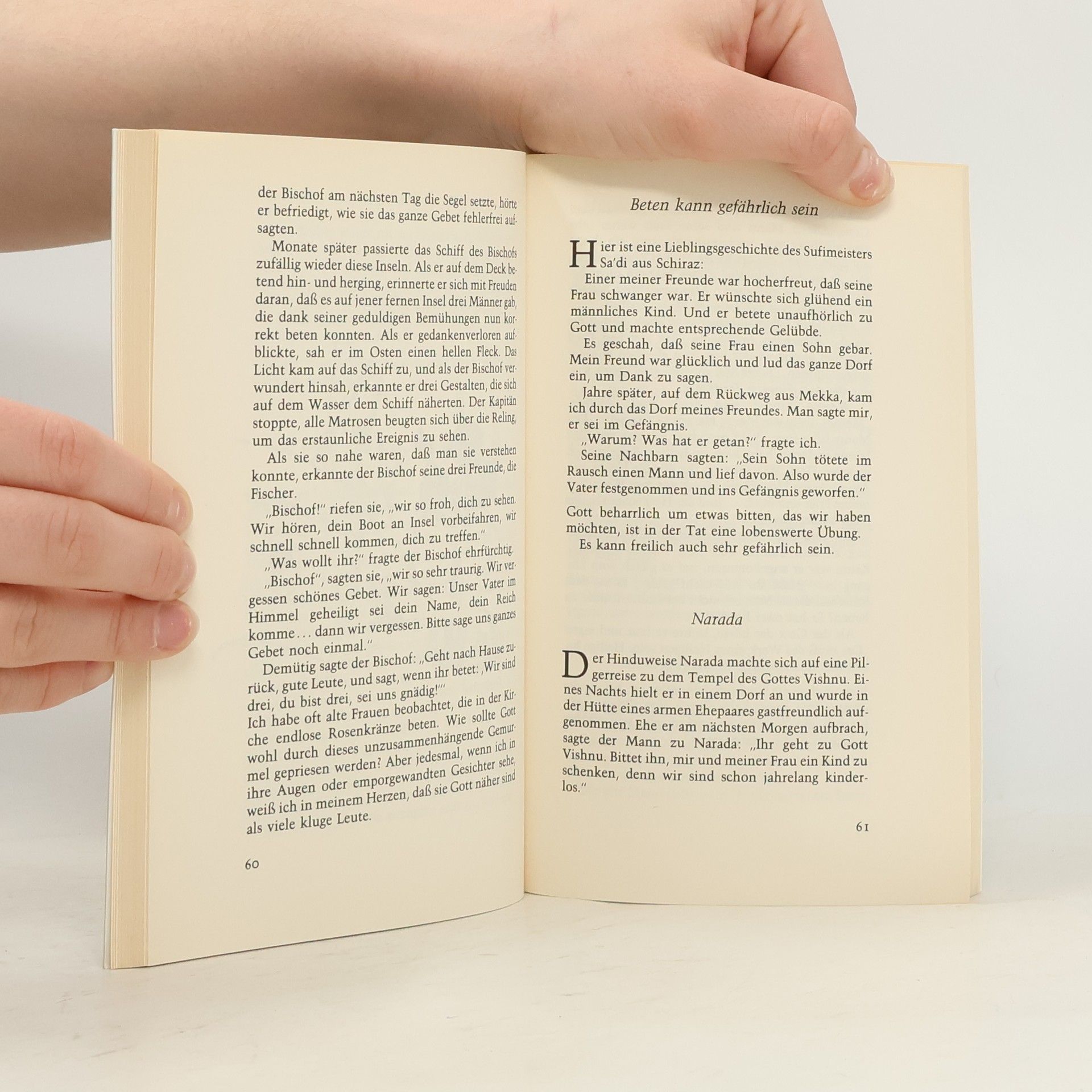 Anthony de Mellos Geschichten sprechen von uns selbst, den Sehnsüchten, Hoffnungen und manchmal auch komischen Verstrickungen. Der Meister heiterer Lebensweisheit schöpft aus Zen-Buddhismus und Sufi-Erzählungen ebenso wie aus biblischer und christlicher Weisheit. Geschichten, die den Alltag blitzartig erleuchten, in ein anderes Licht tauchen und überraschende Antworten bereithalten.