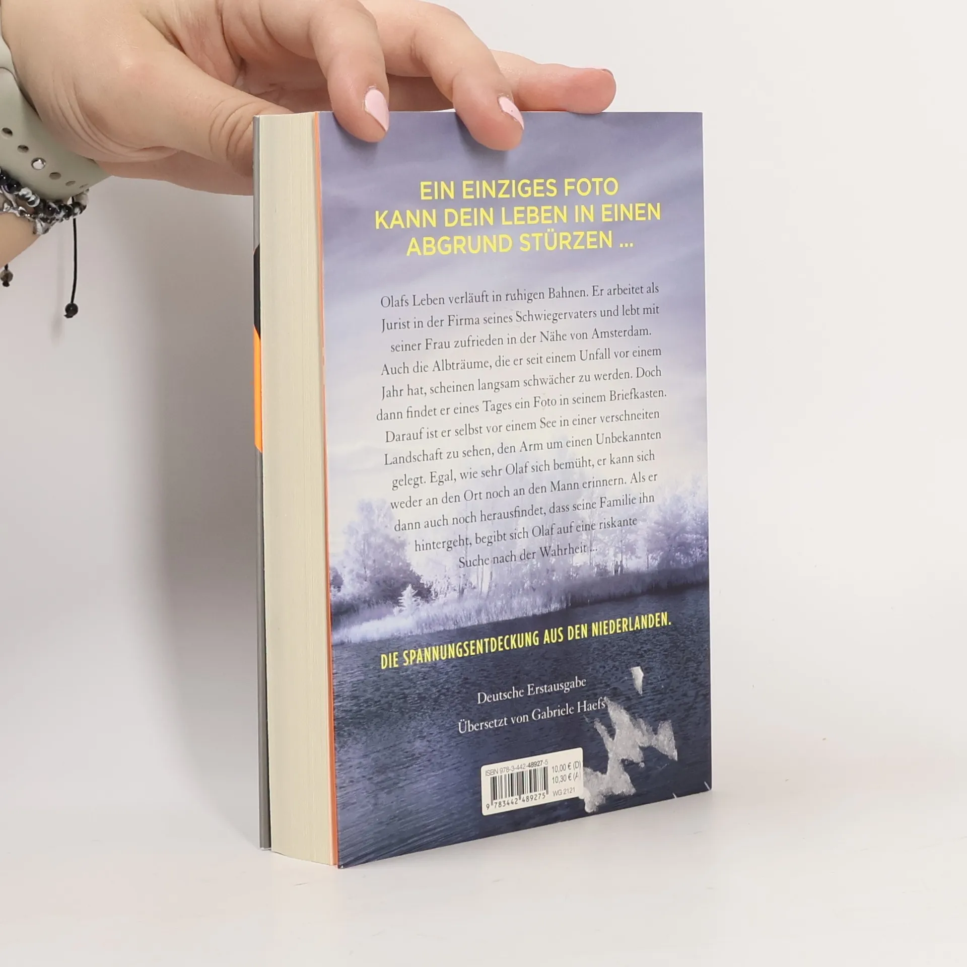 Olafs Leben verläuft in ruhigen Bahnen. Er arbeitet als Jurist in der Firma seines Schwiegervaters und lebt mit seiner Frau zufrieden in der Nähe von Amsterdam. Auch die Albträume, die er seit einem Unfall vor einem Jahr hat, scheinen langsam schwächer zu werden. Doch dann findet er eines Tages ein Foto in seinem Briefkasten. Darauf ist er selbst vor einem See in einer verschneiten Landschaft zu sehen, den Arm um einen Unbekannten gelegt. Egal, wie sehr Olaf sich bemüht, er kann sich weder an den Ort noch an den Mann erinnern. Als er dann auch noch herausfindet, dass seine Familie ihn hintergeht, begibt sich Olaf auf eine riskante Suche nach der Wahrheit ...