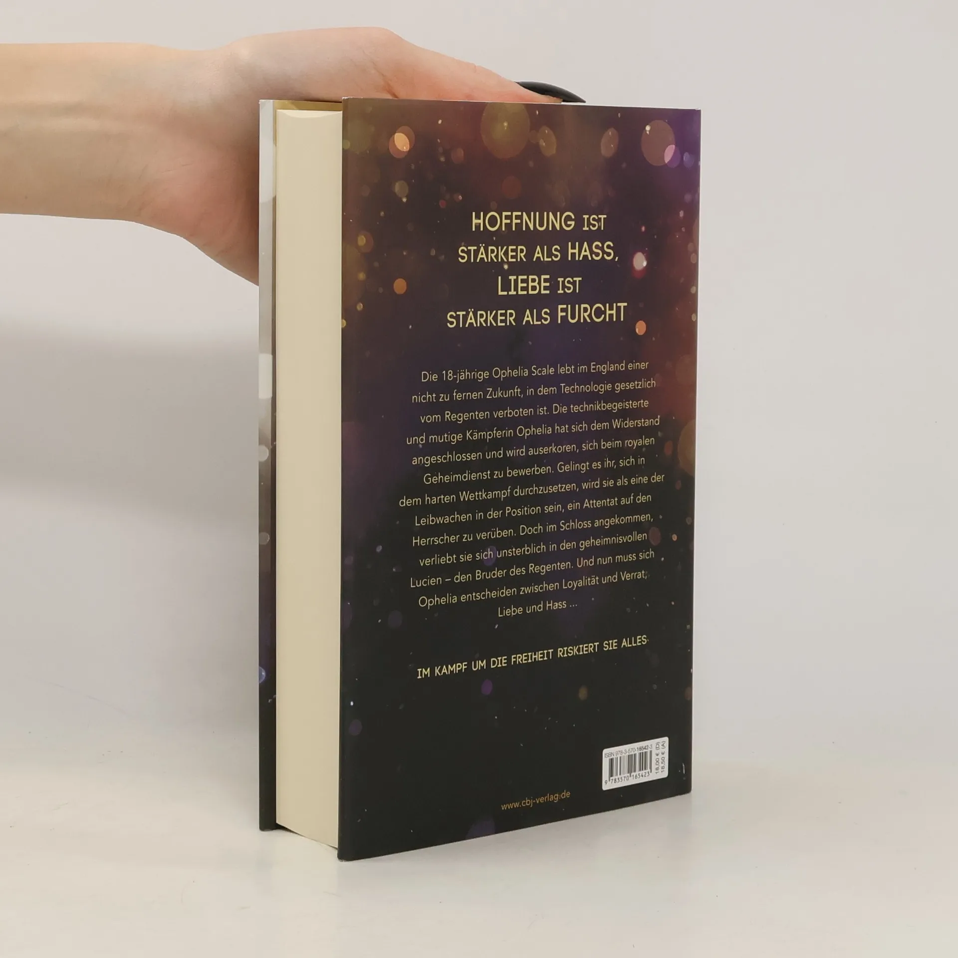 Hoffnung ist stärker als Hass, Liebe ist stärker als Furcht Die 18-jährige Ophelia Scale lebt im England einer nicht zu fernen Zukunft, in dem Technologie per Gesetz vom Regenten verboten ist. Die technikbegeisterte und mutige Kämpferin Ophelia hat sich dem Widerstand angeschlossen und wird auserkoren, sich beim royalen Geheimdienst zu bewerben. Gelingt es ihr, sich in dem harten Wettkampf durchzusetzen, wird sie als eine der Leibwachen in der Position sein, ein Attentat auf den Herrscher zu verüben. Doch im Schloss angekommen, verliebt sie sich unsterblich in den geheimnisvollen Lucien – den Bruder des Regenten. Und nun muss Ophelia sich entscheiden zwischen Loyalität und Verrat, Liebe und Hass ... Alle Bände der Ophelia Scale-Trilogie: Ophelia Scale – Die Welt wird brennenOphelia Scale – Der Himmel wird bebenOphelia Scale – Die Sterne werden fallenOphelia Scale – Wie alles begann (Shortstory, nur als E-Book verfügbar)