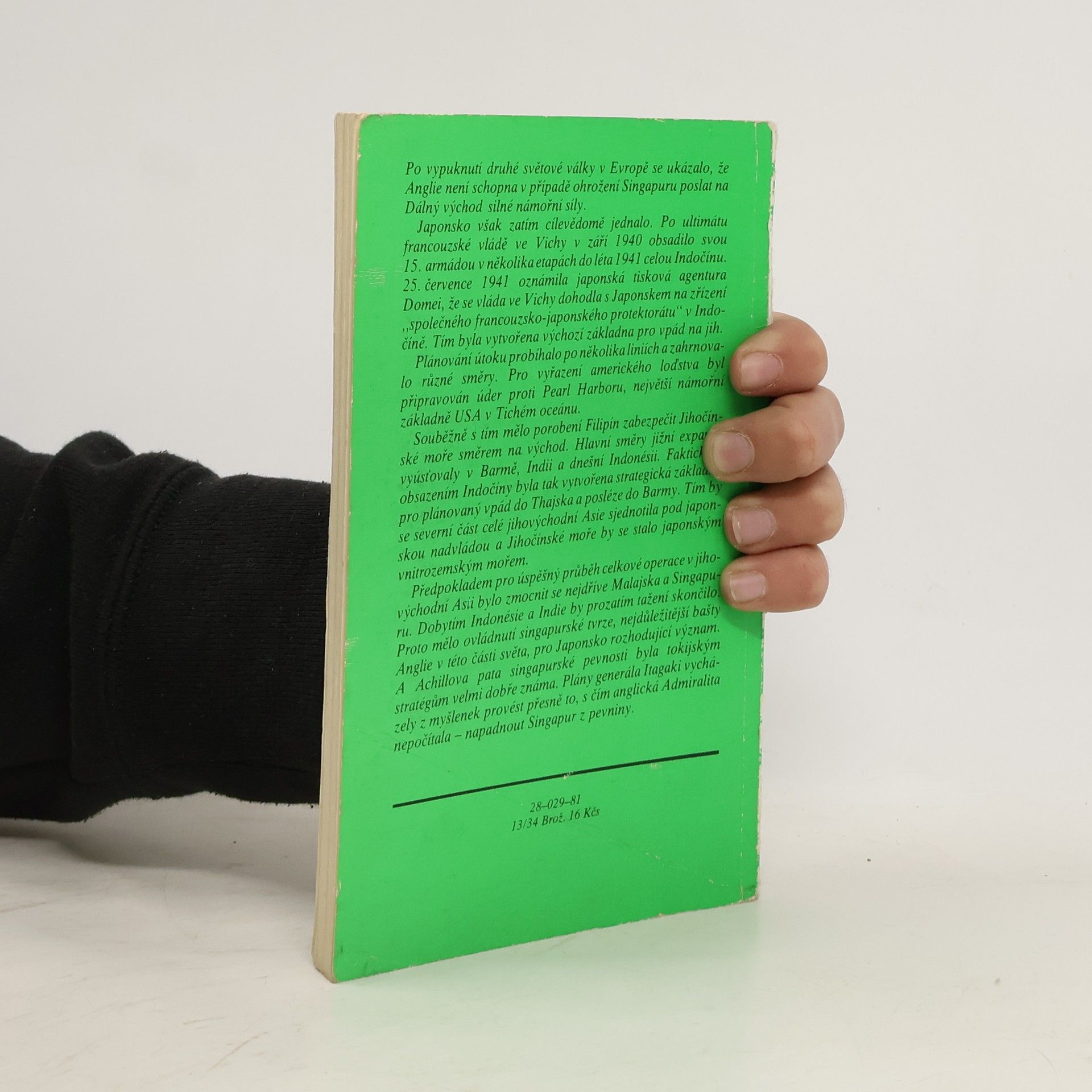 Autor líčí dobytí důležité anglické pevnosti Singapuru v jihovýchodní Asii, která měla klíčový význam v japonských plánech na ovládnutí Indočíny za druhé světové války. Dává nahlédnout do velitelských štábů japonské ibritskéarmády, osvětluje širší vojensko-politické souvislosti tehdejších událostí, podrobně popisuje průběh celé operace aj.